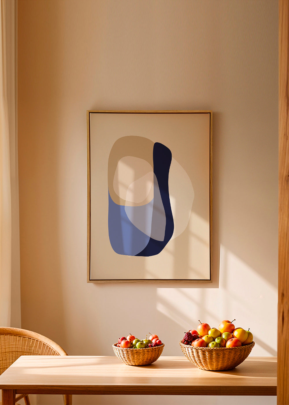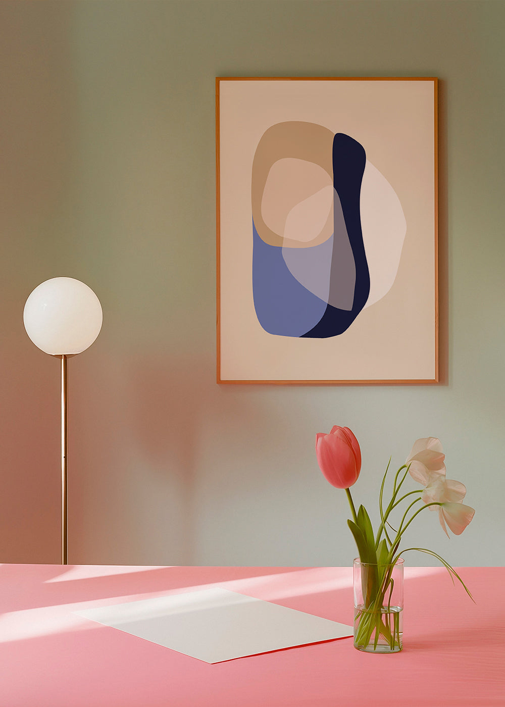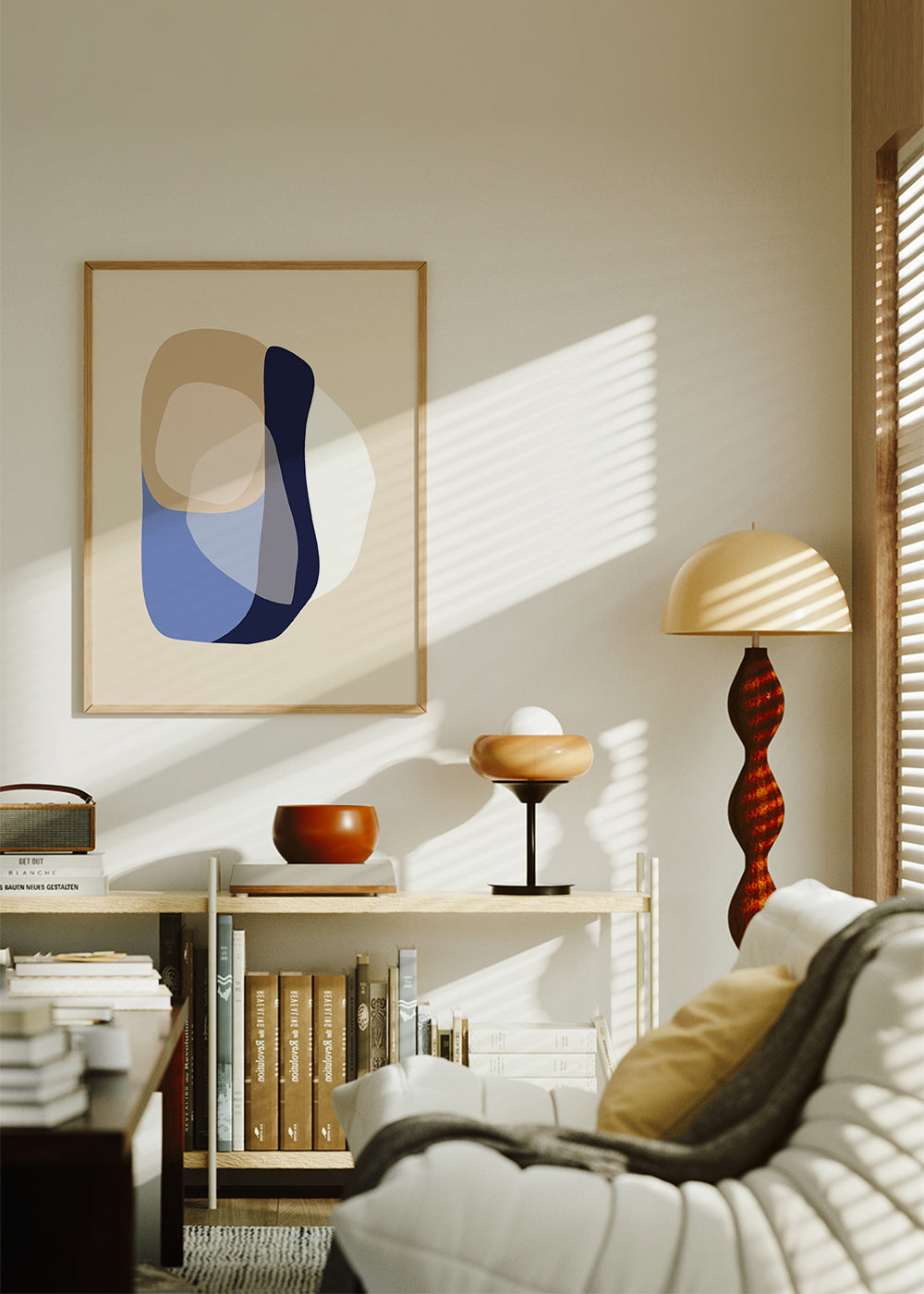 A piece from our selection of geometric wall art and prints, made by Anna Mainz, in blue shades, and with vertical layout. Geometric prints are a great option for decorating modern, cutting-edge spaces. Transform your spaces with art.
