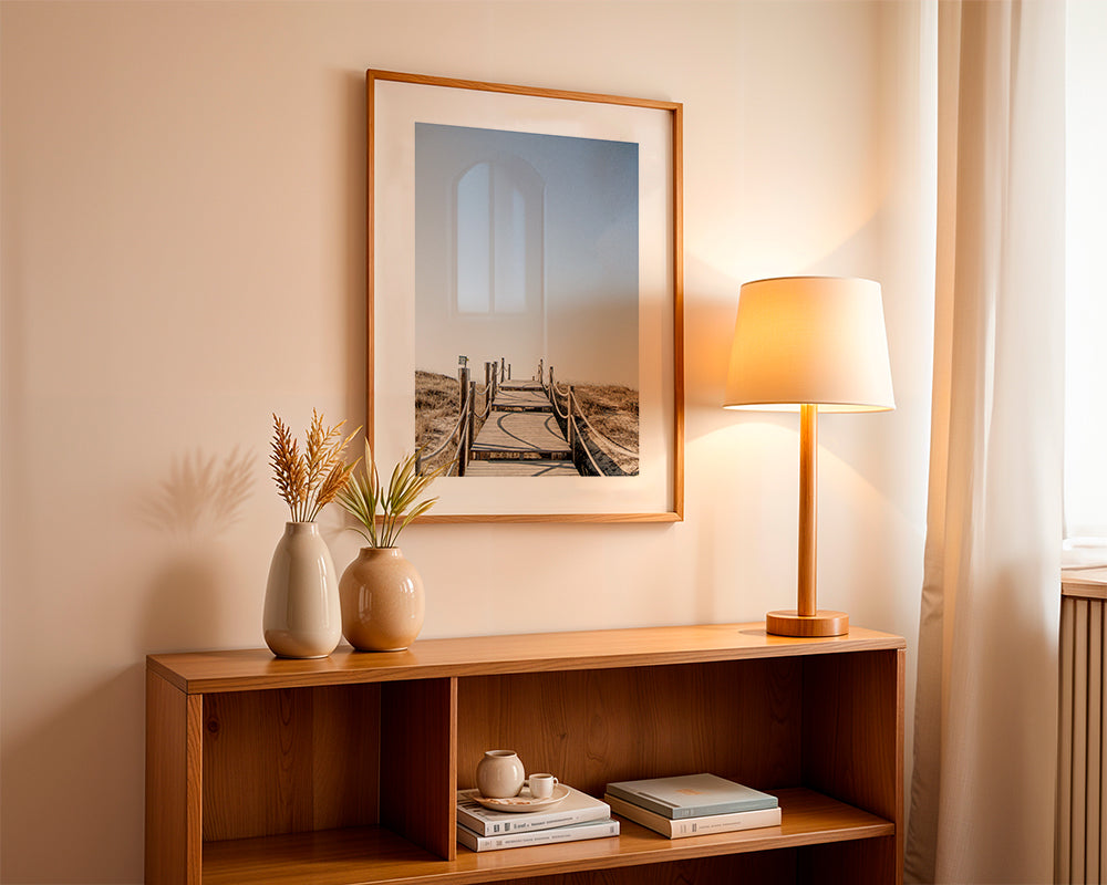 The photopanel or photo panel is a wooden board on which the print with a protective layer is adhered. This panel has a depth of 0.4 in and gives all the prominence to the work, since it is not necessary to frame it. In addition, for this same reason, photos on wood avoid the reflection of the glass or protective plastic of a common painting.