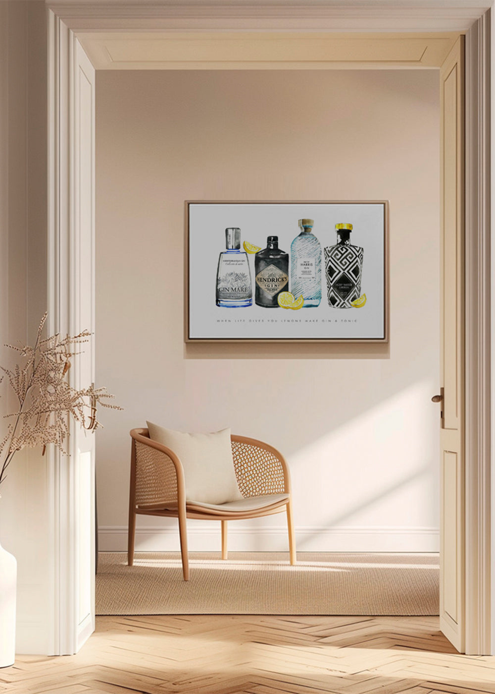 Beautiful piece from the cocktail posters series, an original by Mercedes Lopez Charro, in tones of yellow, and to hang in horizontal position. The tranquillity and freedom of landscape prints is one of a kind. Dress up your walls at home