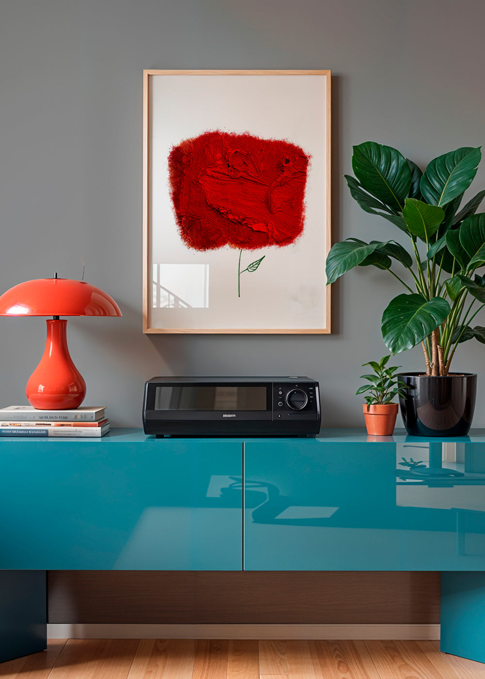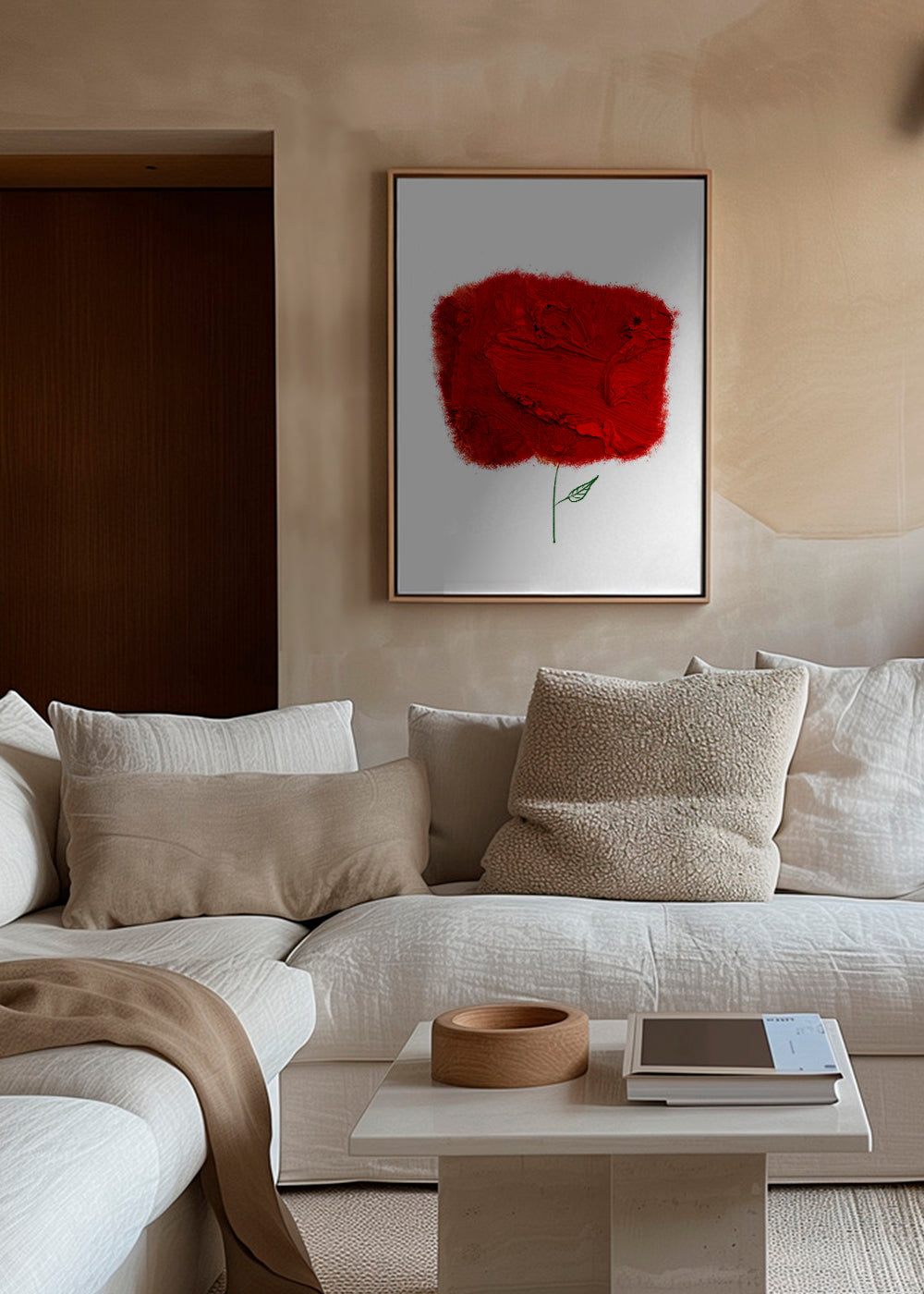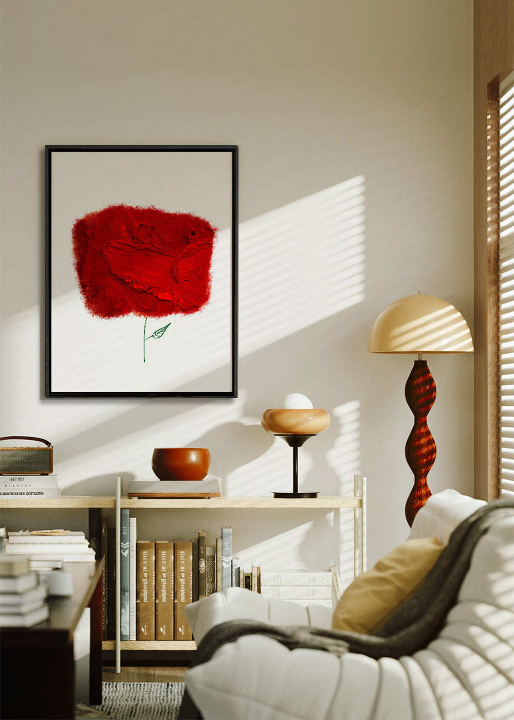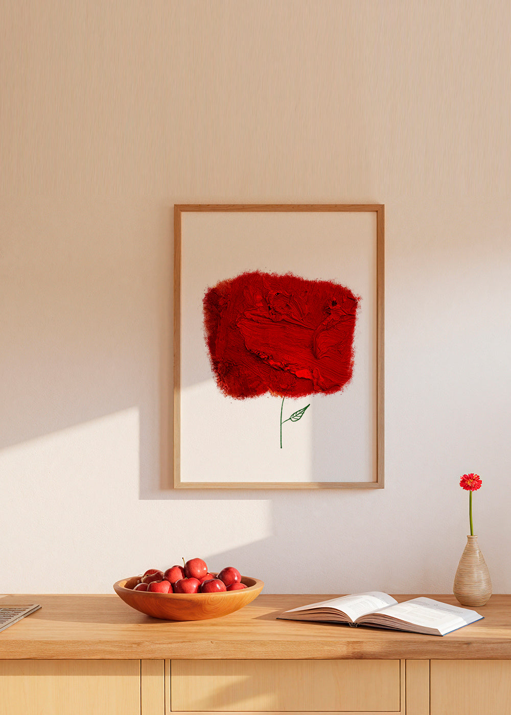 Beautiful piece from our repertoire of brush posters, by creative artist Cesare Cesare Bellassai Art, with tones of red, and facing vertically. The drawing is simple and clean, so you can pair it with other illustrations for an artistic composition. Fresh and original.