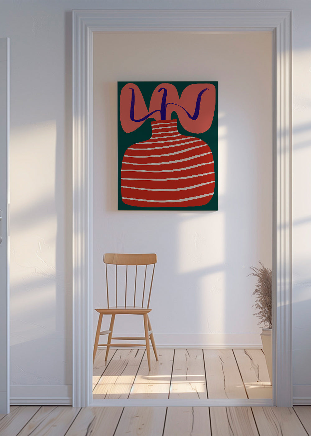 Beautiful print from the illustration wall art series, from the Vaanzaal collection, with tones of red, and with vertical layout. The drawing is simple and clean, so you can pair it with other illustrations for an artistic composition. Add a bit of art to your home decor.