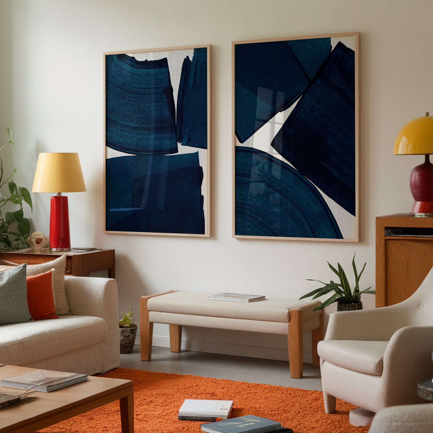 Beautiful piece from our brush posters series, created by Orara Studio, in tones of blue, and with vertical layout. Geometric art is an elegant style to decorate the walls of your home with. The difference is in the details.