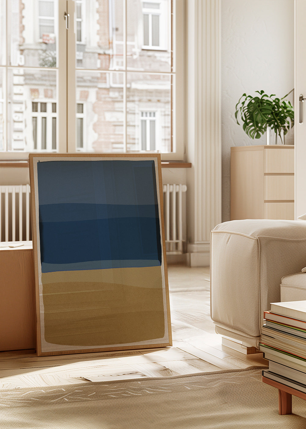 A piece from our abstract wall art and prints collection, created by Orara Studio, with blue, and facing vertically. If you want to add some style and originality to your decor, this abstract design will help give a cutting-edge touch to the walls of your home. Let art flood your home.