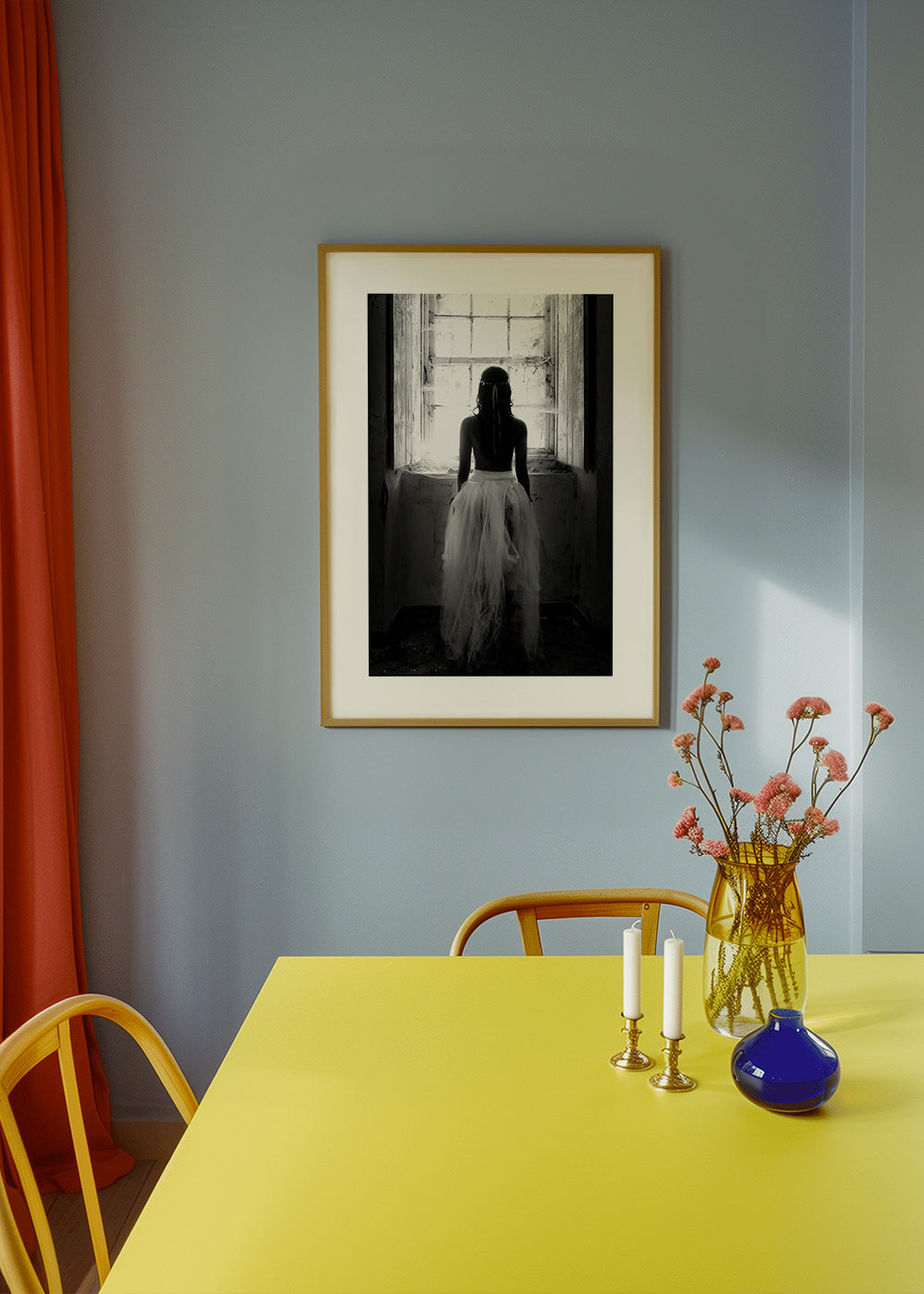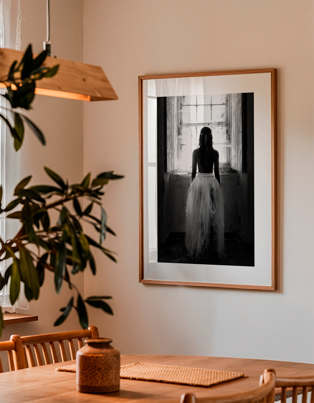 A print from our girls wall art category, with touches of black, and vertical layout. A perfect photo to give your walls an original touch with photos to frame. Get swept away by art. The white strip around the piece enhances its expressiveness.
