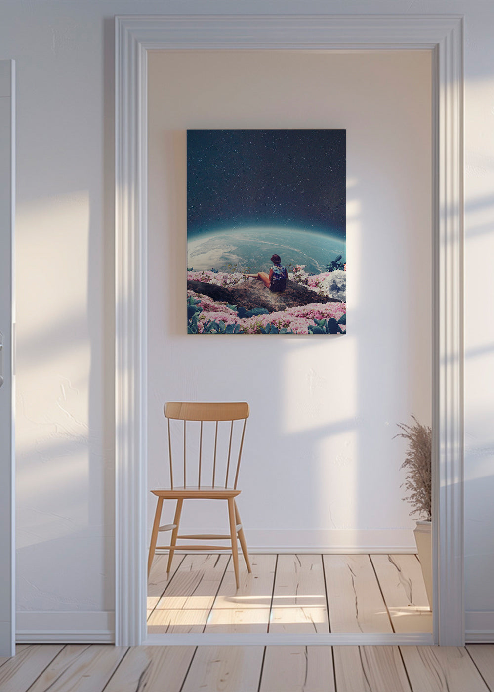 Canvas: printed on hand-stretched fabric for a more volumetric and artistic look, available with or without a frame.