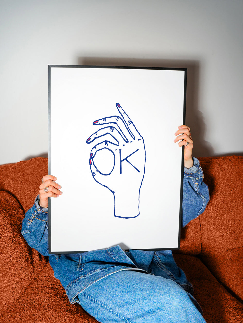 A print from the hands posters series, from the typealive collection, with tones of blue, and vertical layout. Illustrated posters are the perfect way to fill your walls with creativity. Fresh and original.