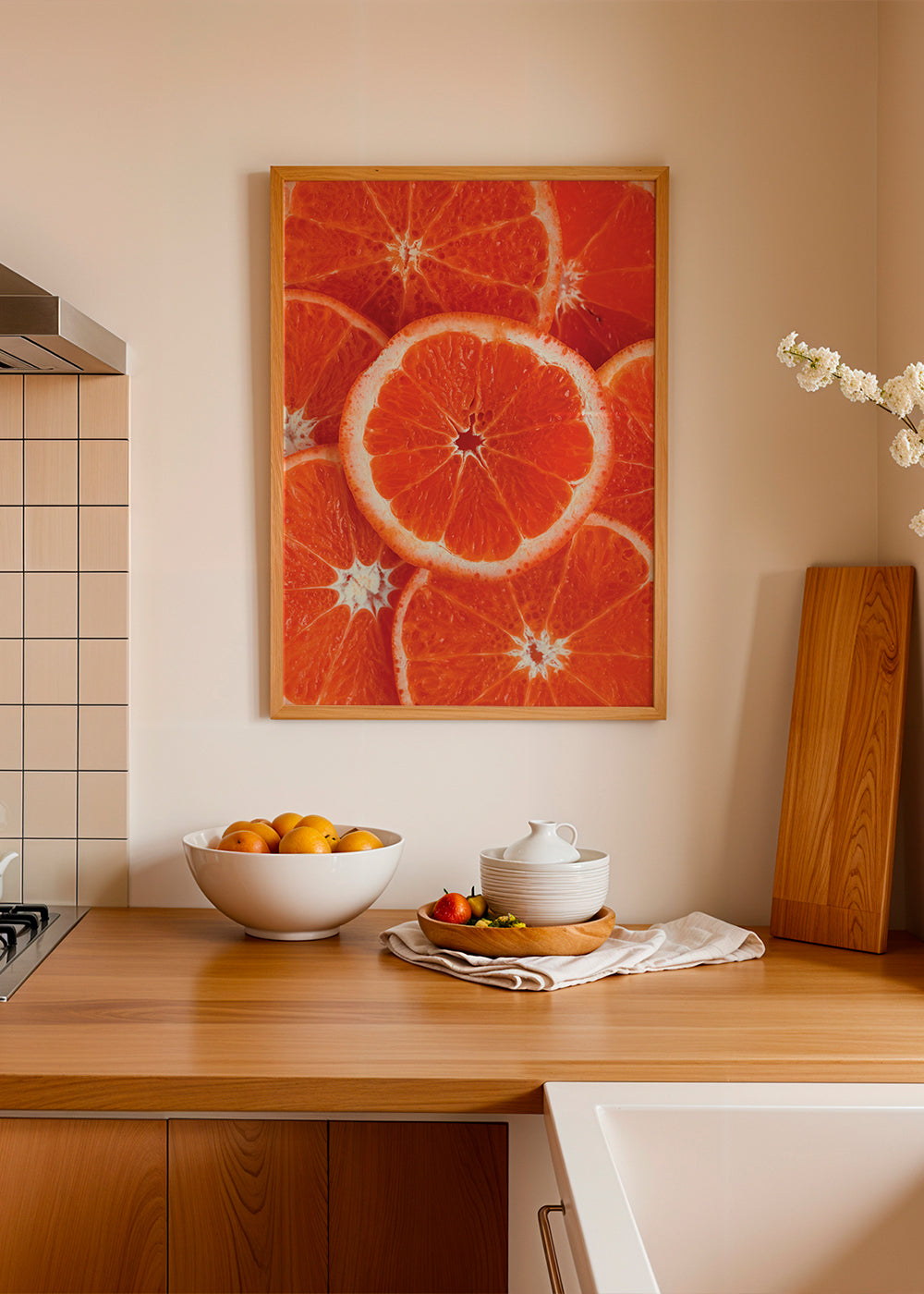 Beautiful poster from the fruit posters category, with shades of orange, and vertical layout. The kitchen can also be fun; let our kitchen prints bring out your culinary side. There are no ugly or beautiful walls, just empty or full ones.