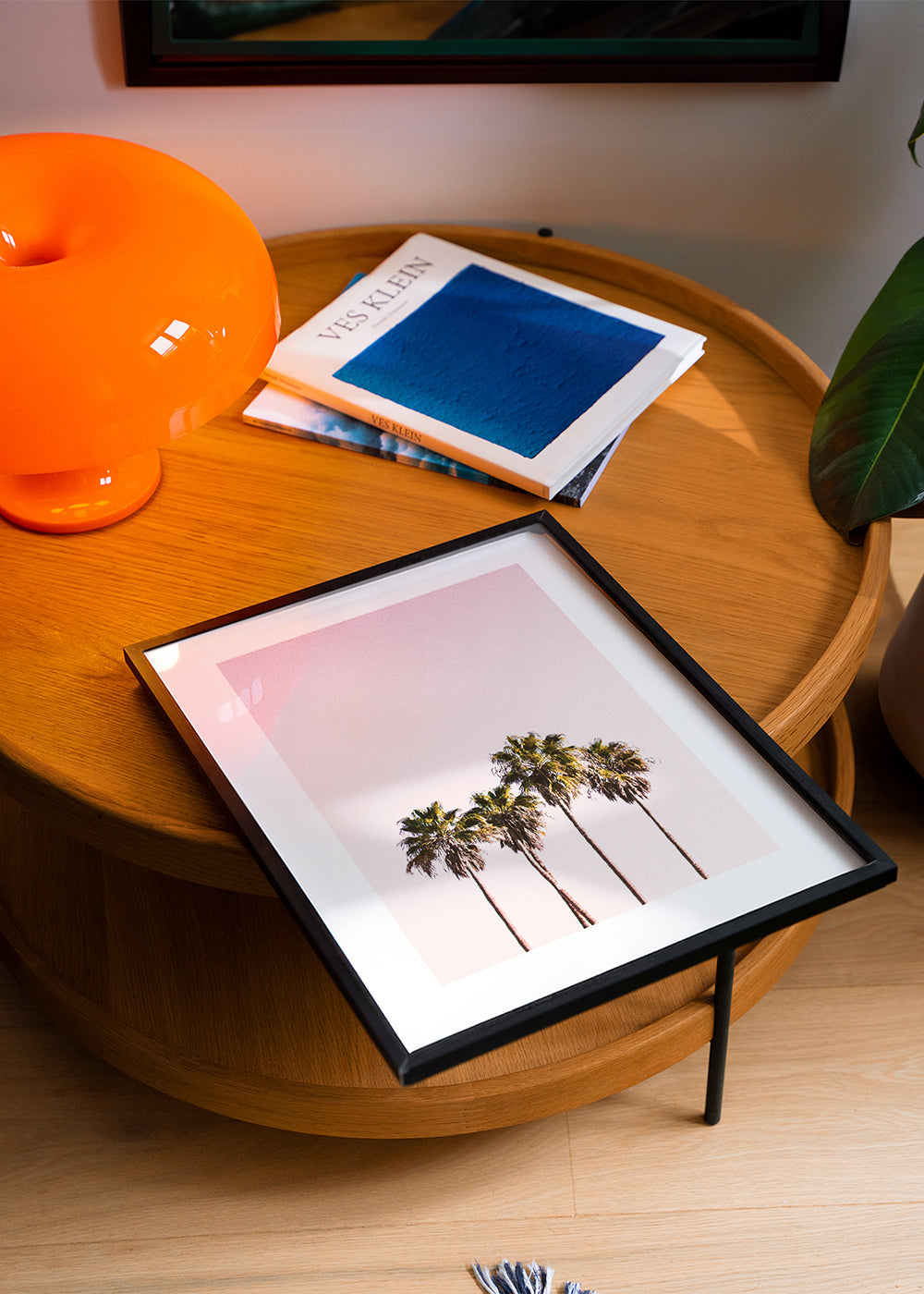 We work with solid wood and aluminum frames. All framed artworks are shipped already assembled and ready to hang. The front protection is high-clarity acrylic glass.