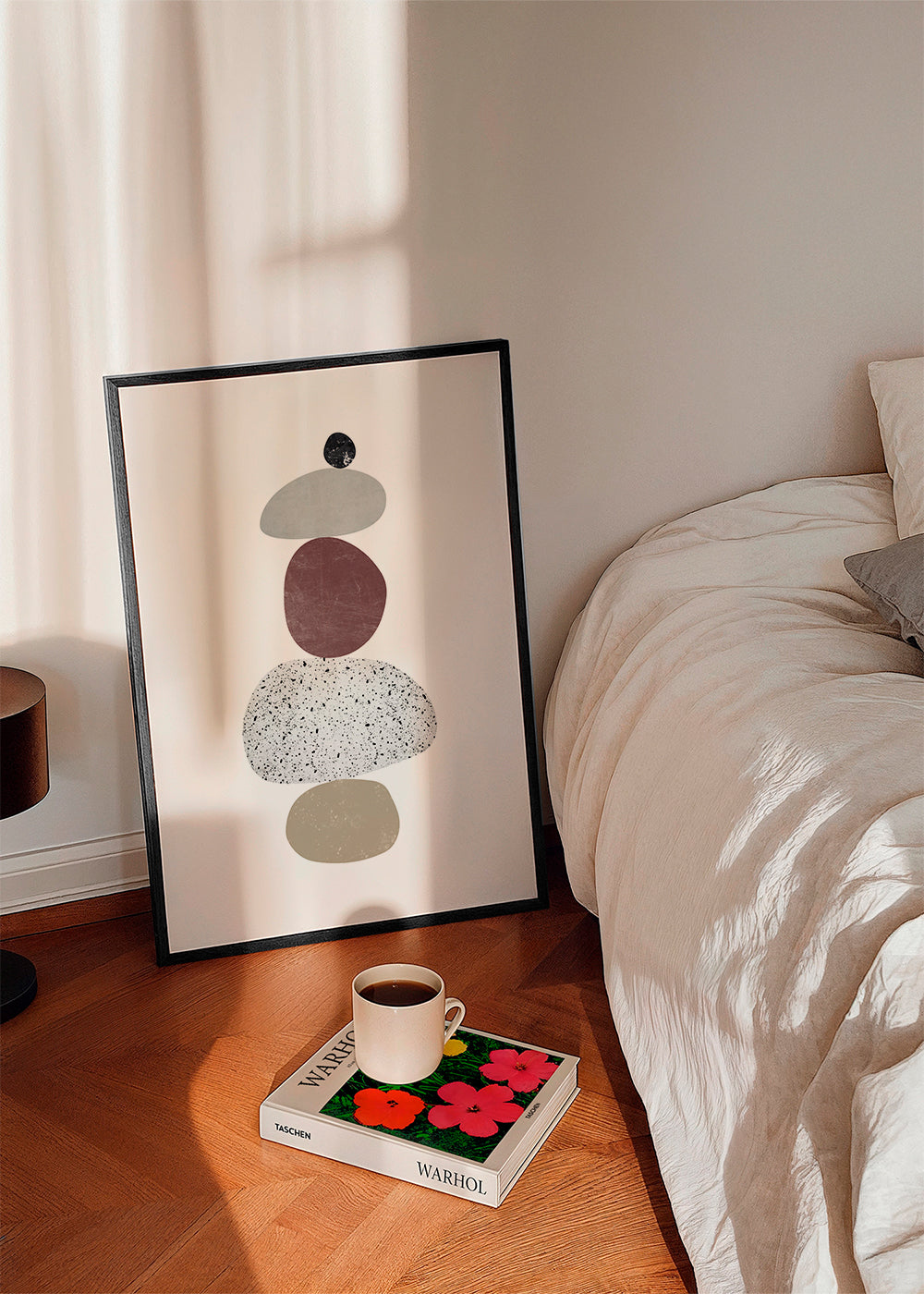 Each canvas is hand-stretched over a wooden frame. The depth is 3 cm for unframed canvases and 4 cm for framed canvases.