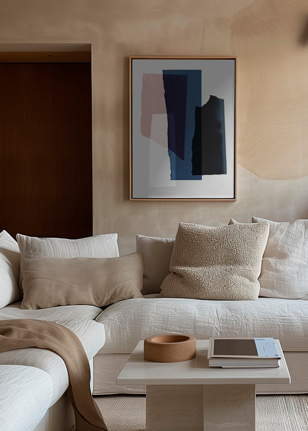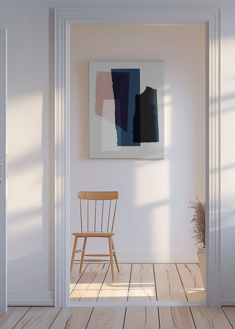 Each canvas is hand-stretched over a wooden frame. The depth is 3 cm for unframed canvases and 4 cm for framed canvases.