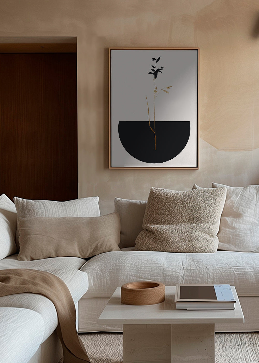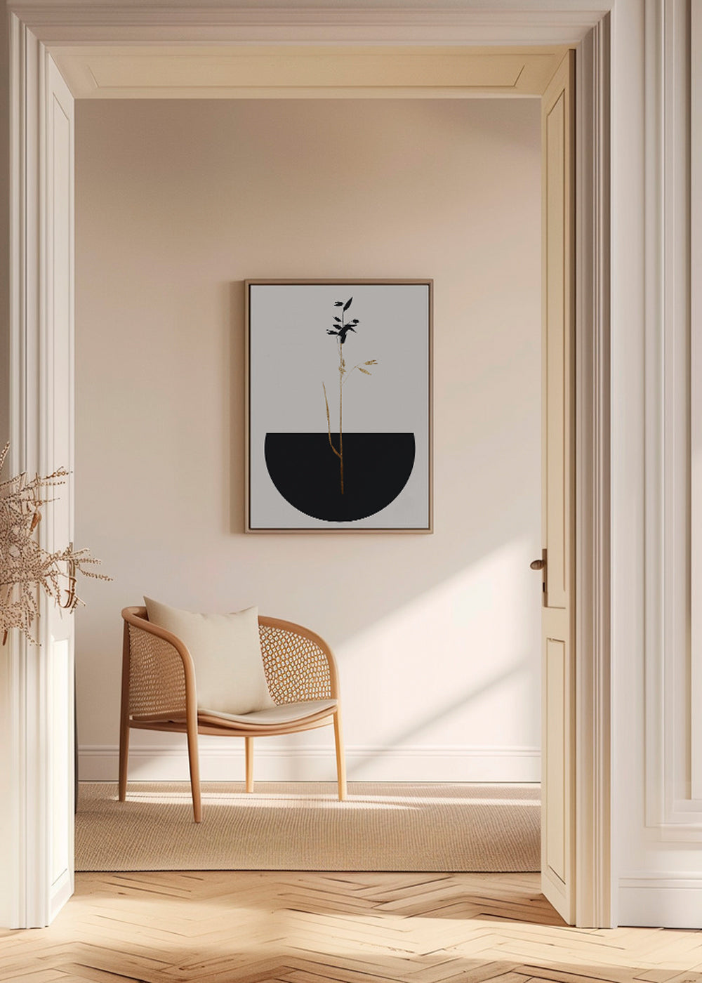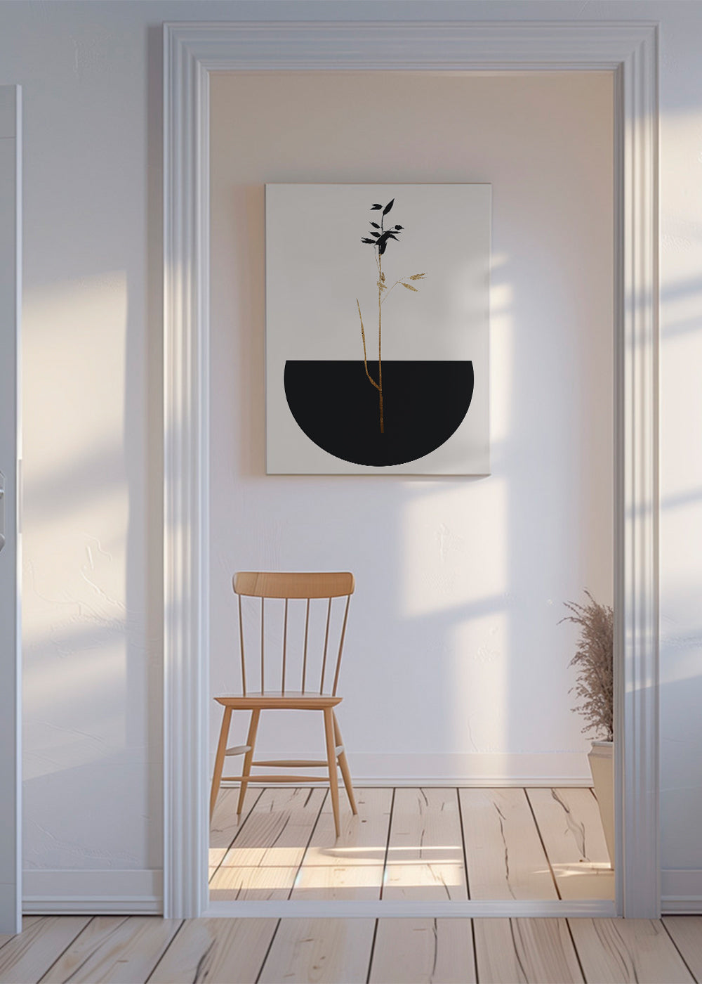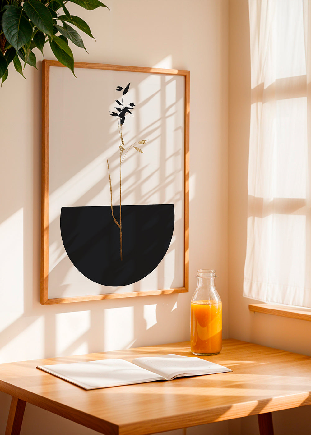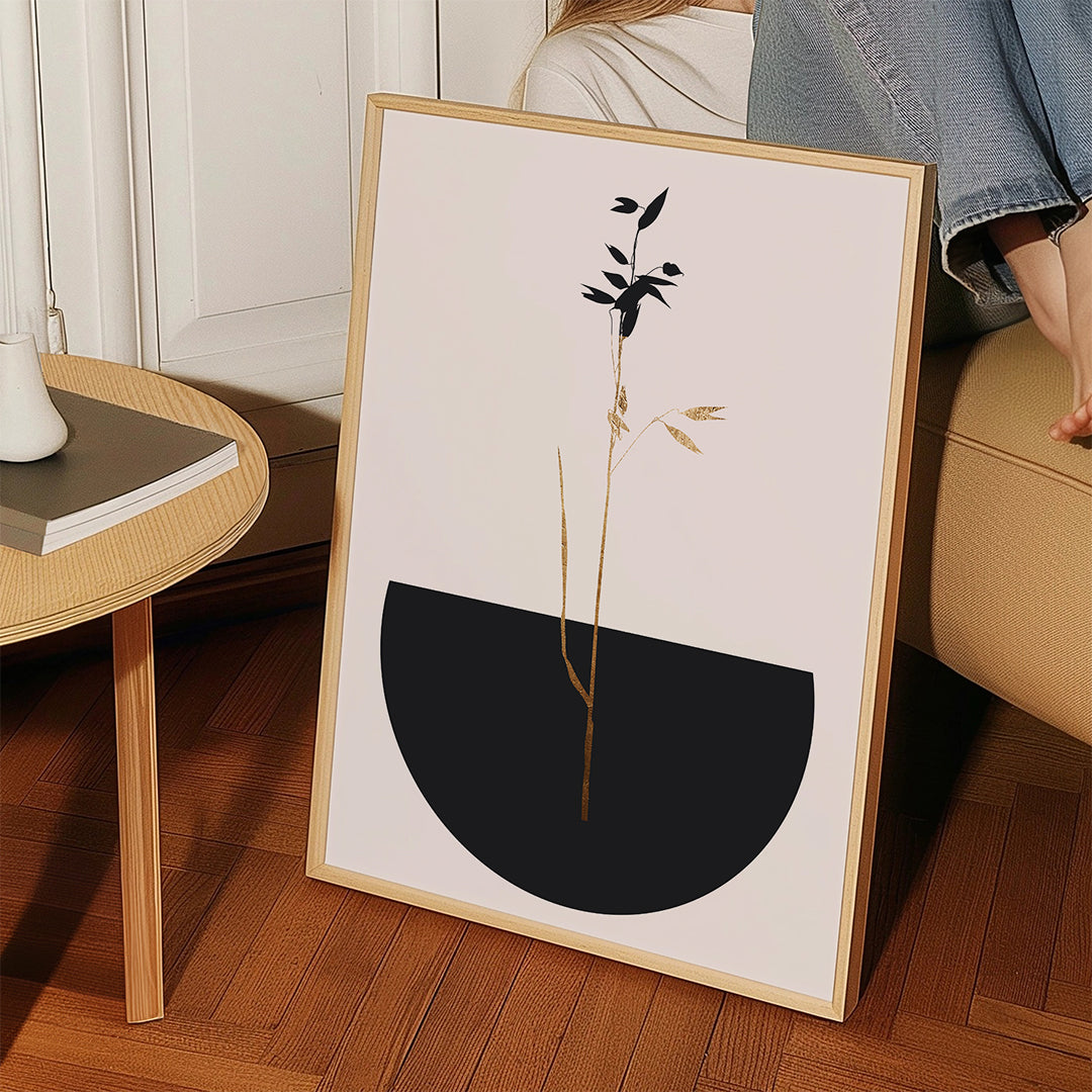 A print from our botanical prints and wall art series, from the collection of the artist Kubistika, with touches of gold, and facing vertically. A wall with botanical decorations emanates life and energy. Create your own botanical garden by combining our prints with flowers and plants. Transform your spaces with art.