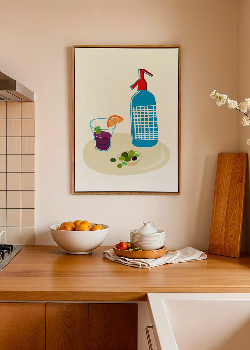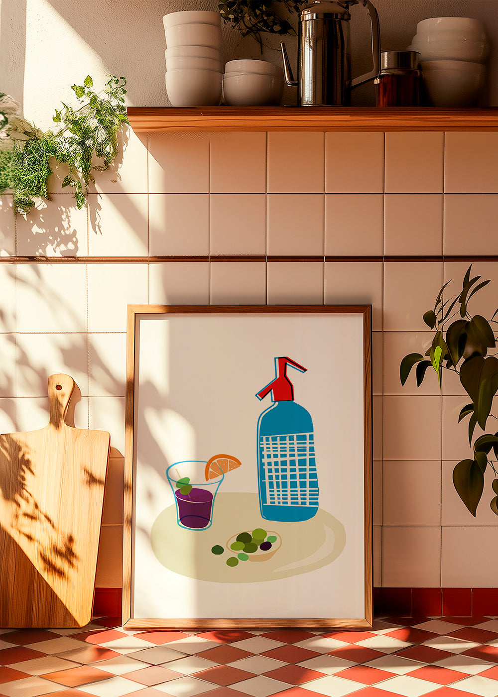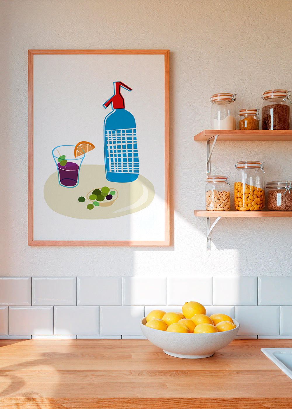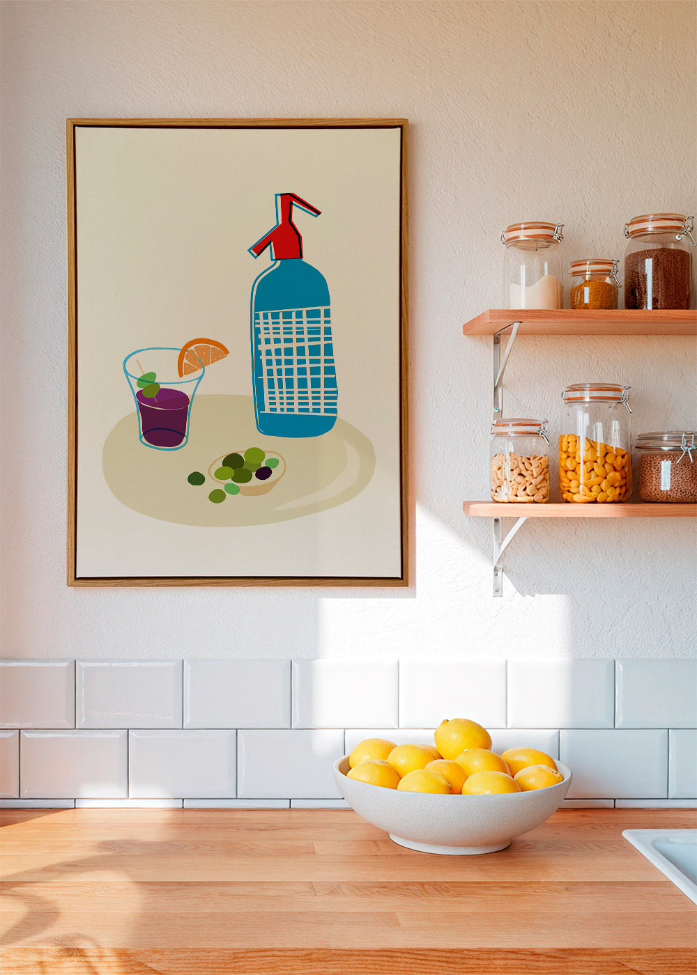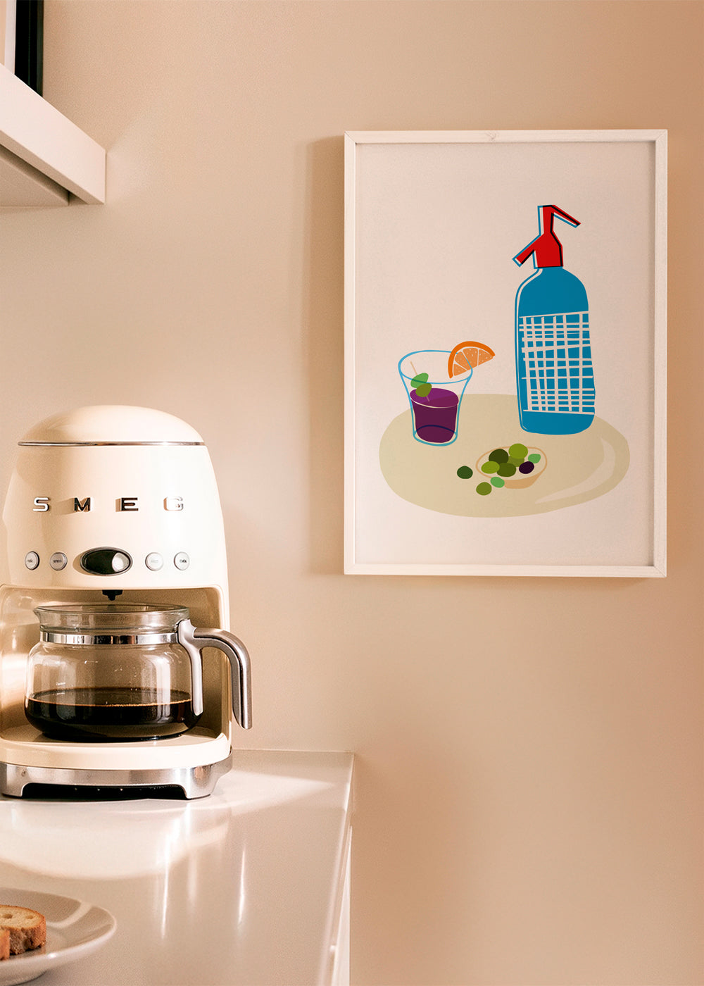 This poster from our cocktail posters collection, by creative artist Nouveau Prints, with tones of grey, and to hang in vertical position. A design for the foodies in the house. Decorate your kitchen with prints; Elegance inspired by art.