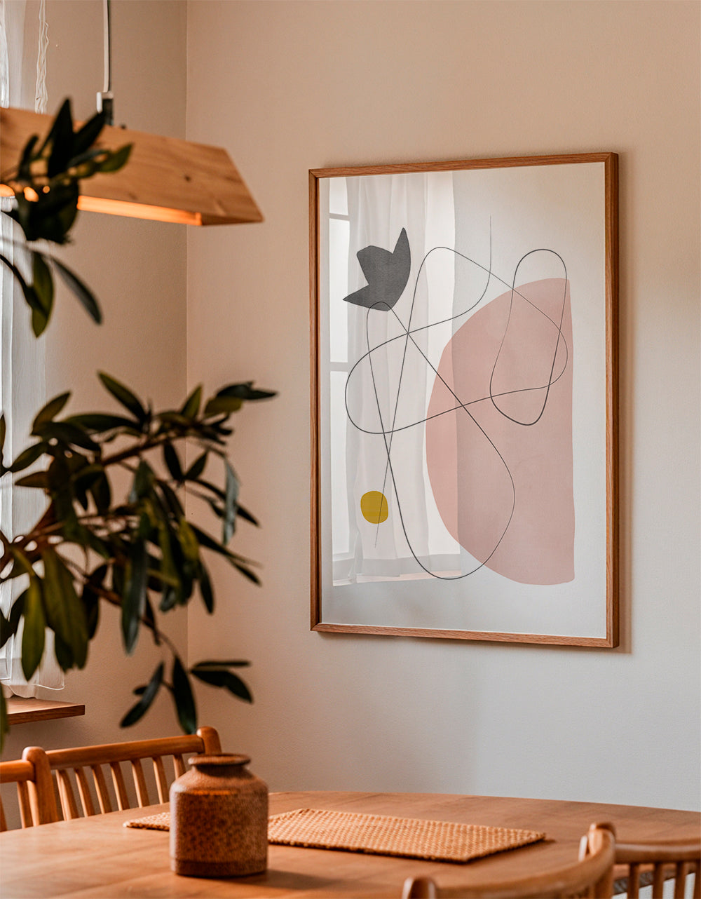 A print from our selection of geometric wall art and prints, from the Nouveau Prints collection, in tones of pink, and with vertical layout. Geometric art is an elegant style to decorate the walls of your home with. Pure art and design.