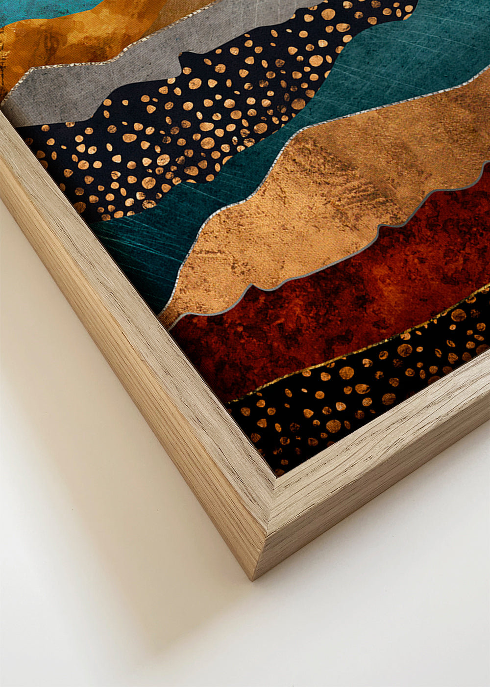 The wooden frames up to 20x28 in (included) have a width of 0.6 in and a depth of 1.2 in, while in the larger ones the width is 0.8 in and a depth of 1.2 in.