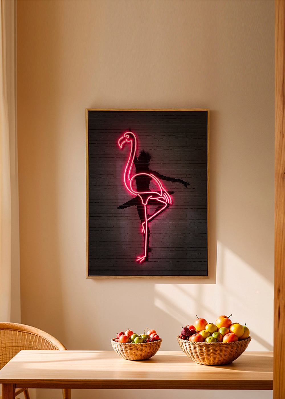 A piece inspired by the collection of flamingo wall art and prints, by creative artist Octavian Mielu, in tones of pink, and vertical layout. Decorating with animal prints is a great way to make your walls more energetic. Create your favourite spot.