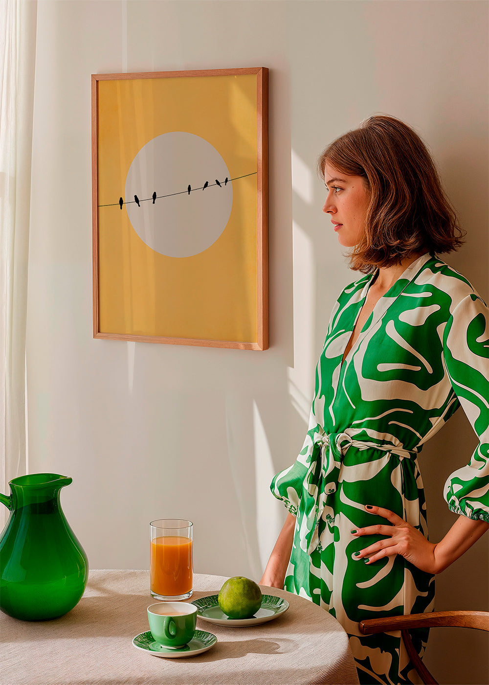 A piece from the animal wall art series, from the Kubistika collection, with tones of yellow, and vertical layout. Decorating with animal prints is a great way to make your walls more energetic. A wall of posters can change the look of a room.