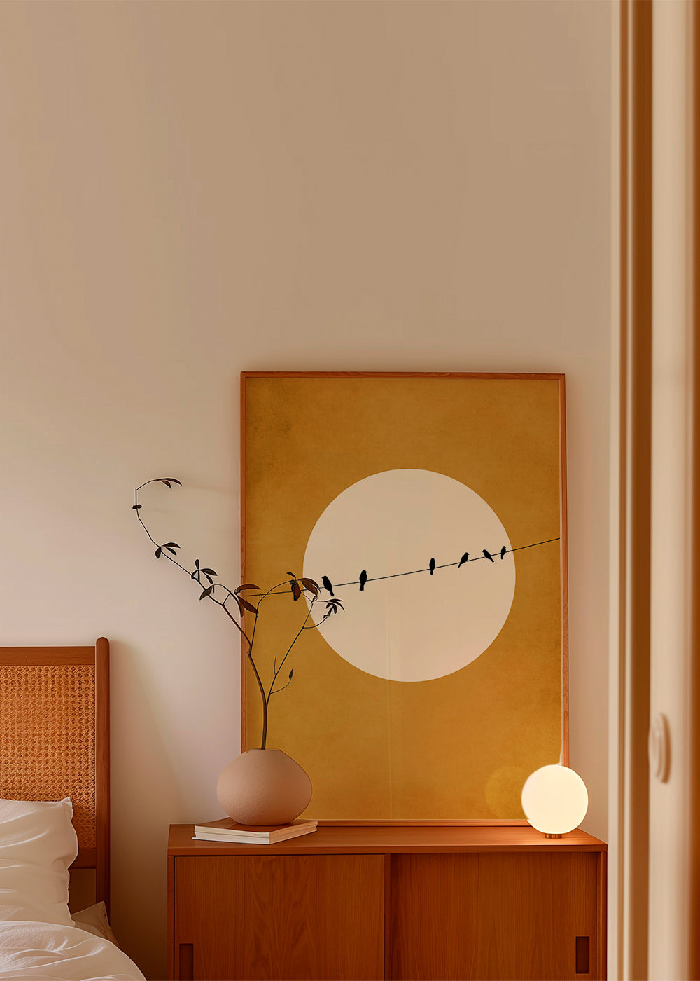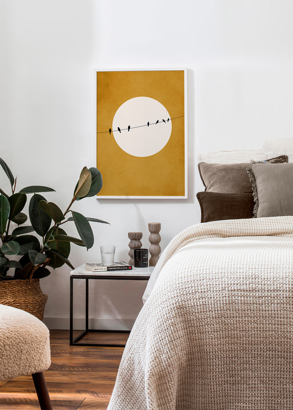 Beautiful poster in the style of our sunrise and sunset wall art, an original by Kubistika, with yellow, and in vertical position. Illustrated prints give your home decor a touch of originality. There are no ugly or beautiful walls, just empty or full ones.