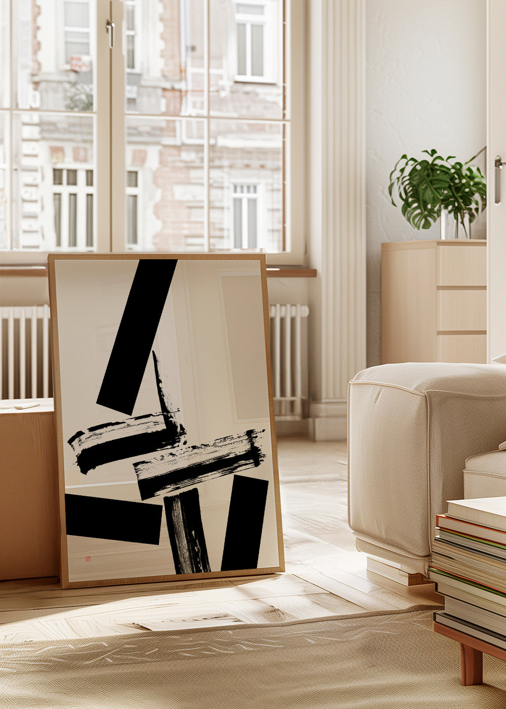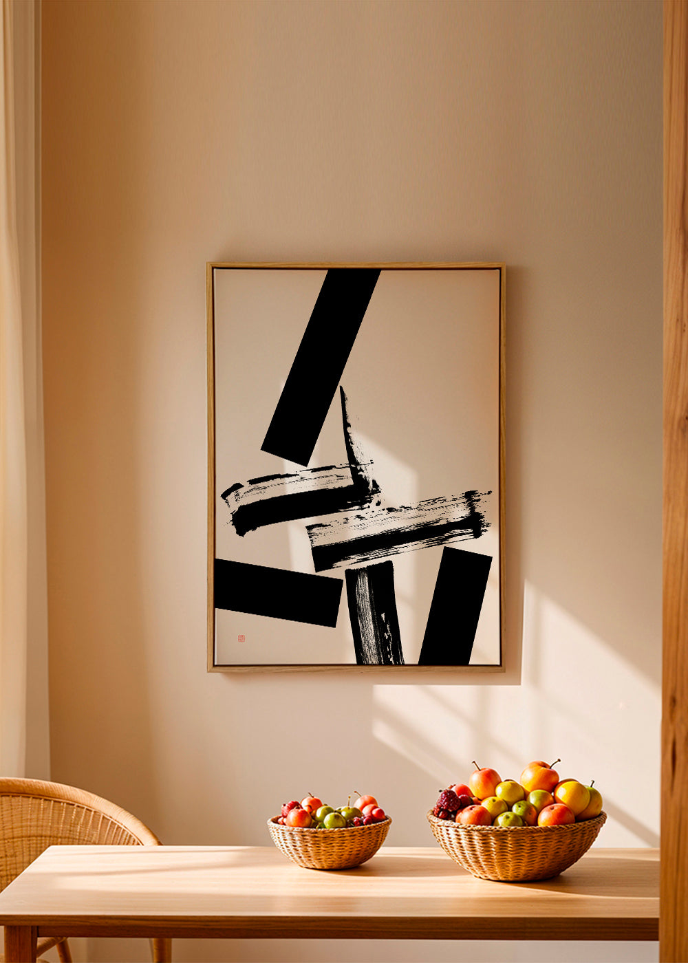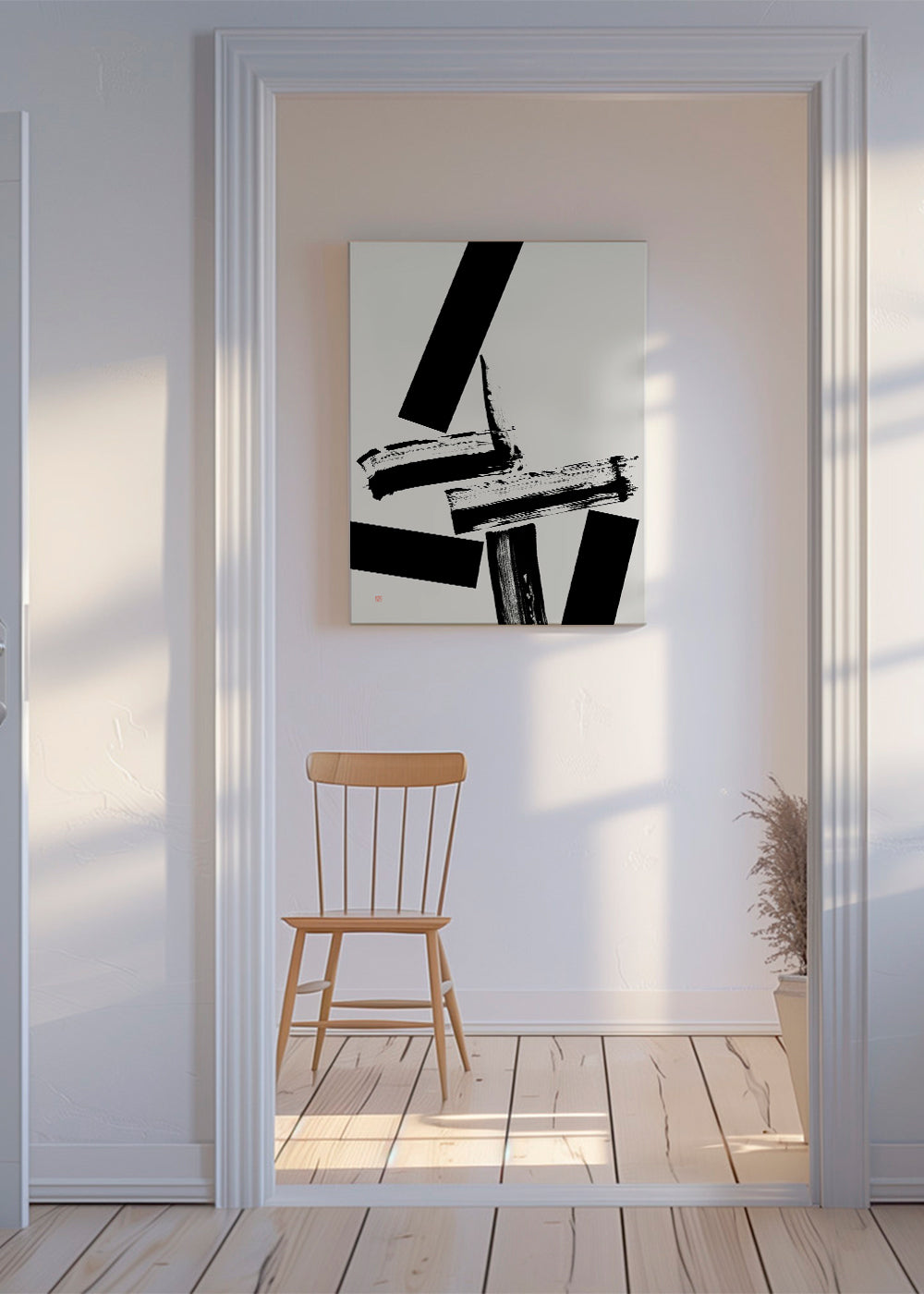 A design in the style of our japanese wall art, created by Thoth Adan, with black tones, and with vertical layout. If you're looking for a piece for simple, functional spaces with Scandinavian style, this design is perfect. Pair it with Nordic prints to create a modern art gallery. Create special spaces.