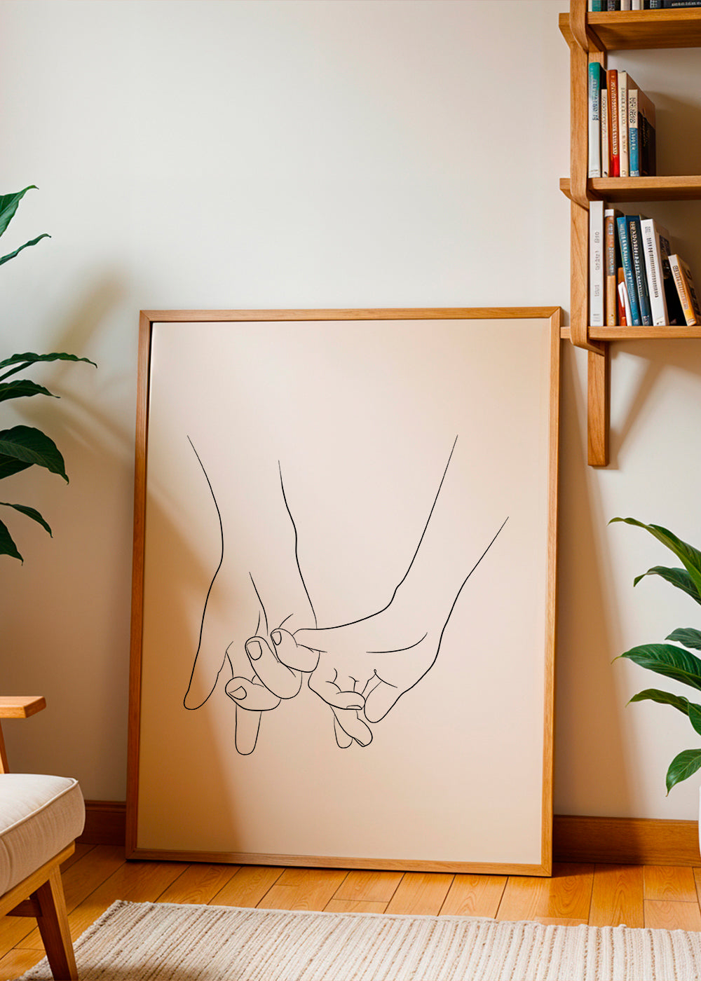 A poster from our repertoire of hands posters, by Noveau Prints, in black and white shades, and facing vertically. The drawing is simple and clean, so you can pair it with other illustrations for an artistic composition. Create a one-of-a-kind spot.