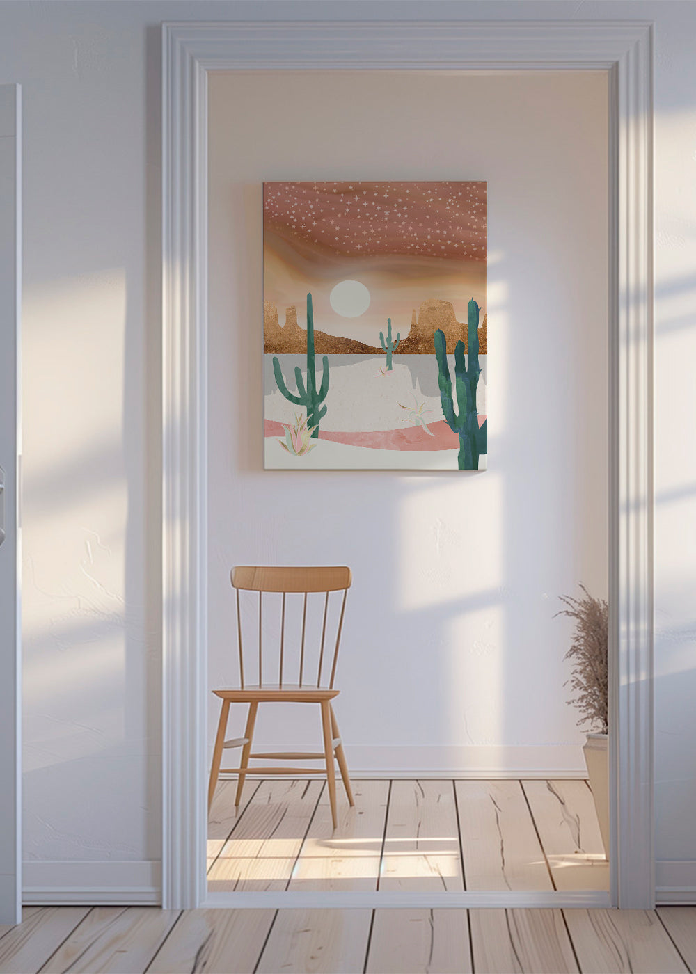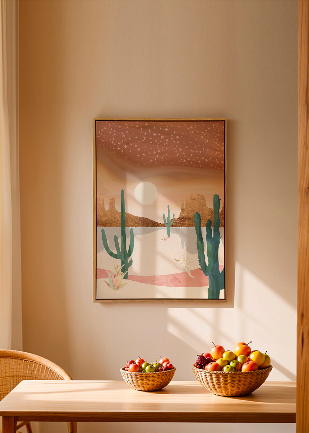 To avoid breakage, our frames incorporate acrylic glass instead of real glass. The acrylic glass reproduces the effect of glass, but avoids possible damage during transport or placement of the frame.