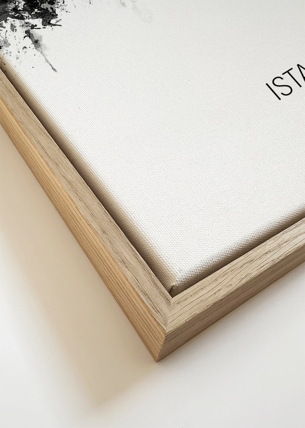 The wooden frames up to 20x28 in (included) have a width of 0.6 in and a depth of 1.2 in, while in the larger ones the width is 0.8 in and a depth of 1.2 in.