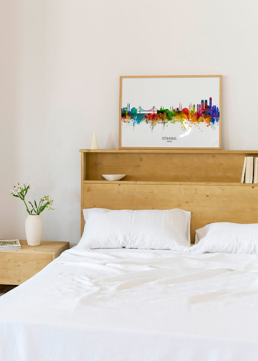 Each canvas is hand-stretched over a wooden frame. The depth is 3 cm for unframed canvases and 4 cm for framed canvases.