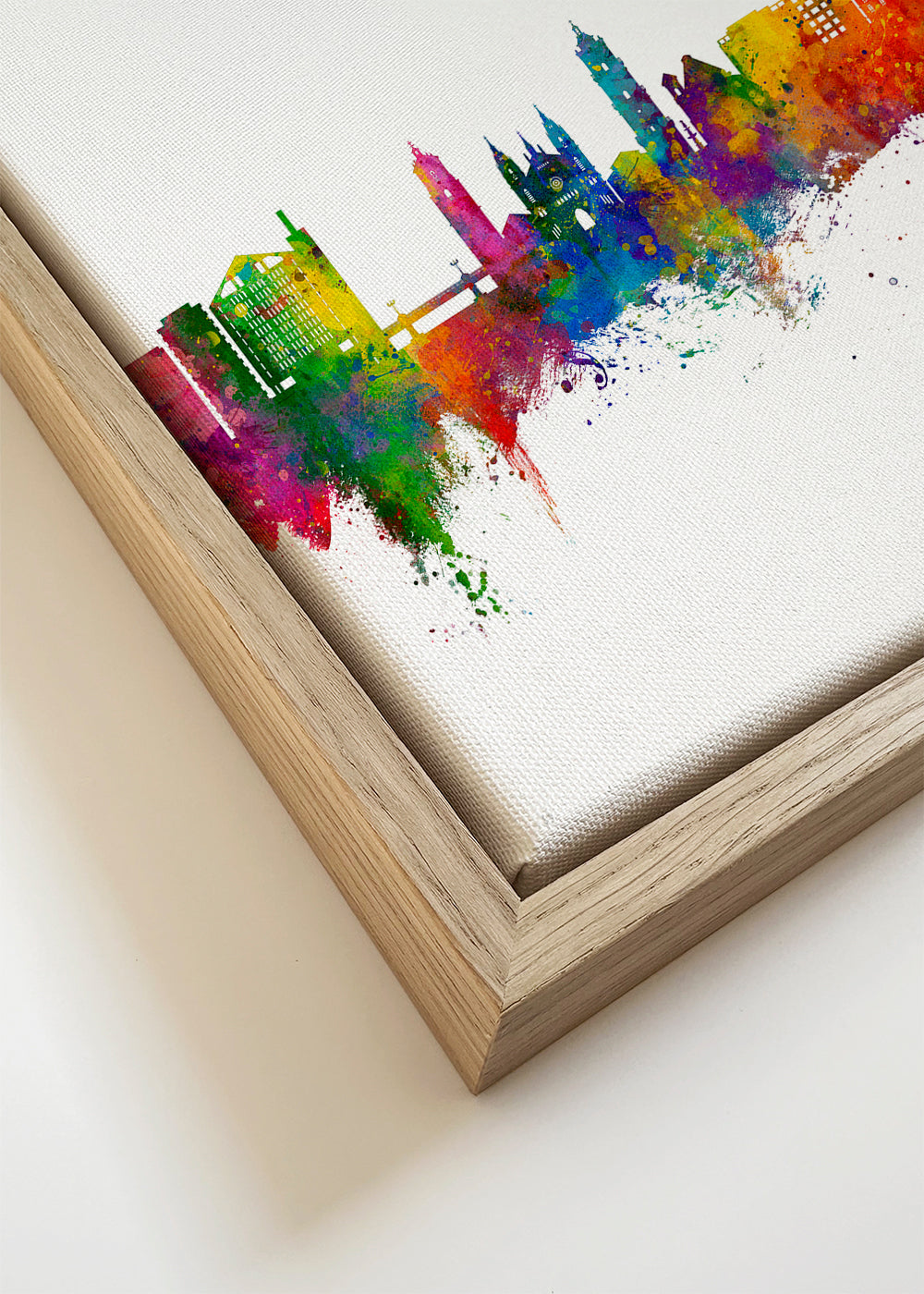 This print from our skylines canvas collection, by creative artist Michael Tompsett, with tones of multicolor, and horizontal layout. Our map and city prints are perfect for those who love cities and architecture. A wall of posters can change the look of a room.