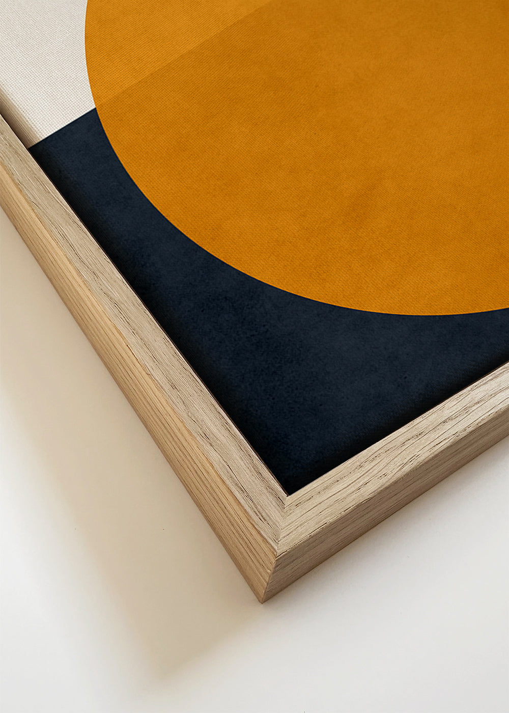 We work with solid wood and aluminum frames. All framed artworks are shipped already assembled and ready to hang. The front protection is high-clarity acrylic glass.
