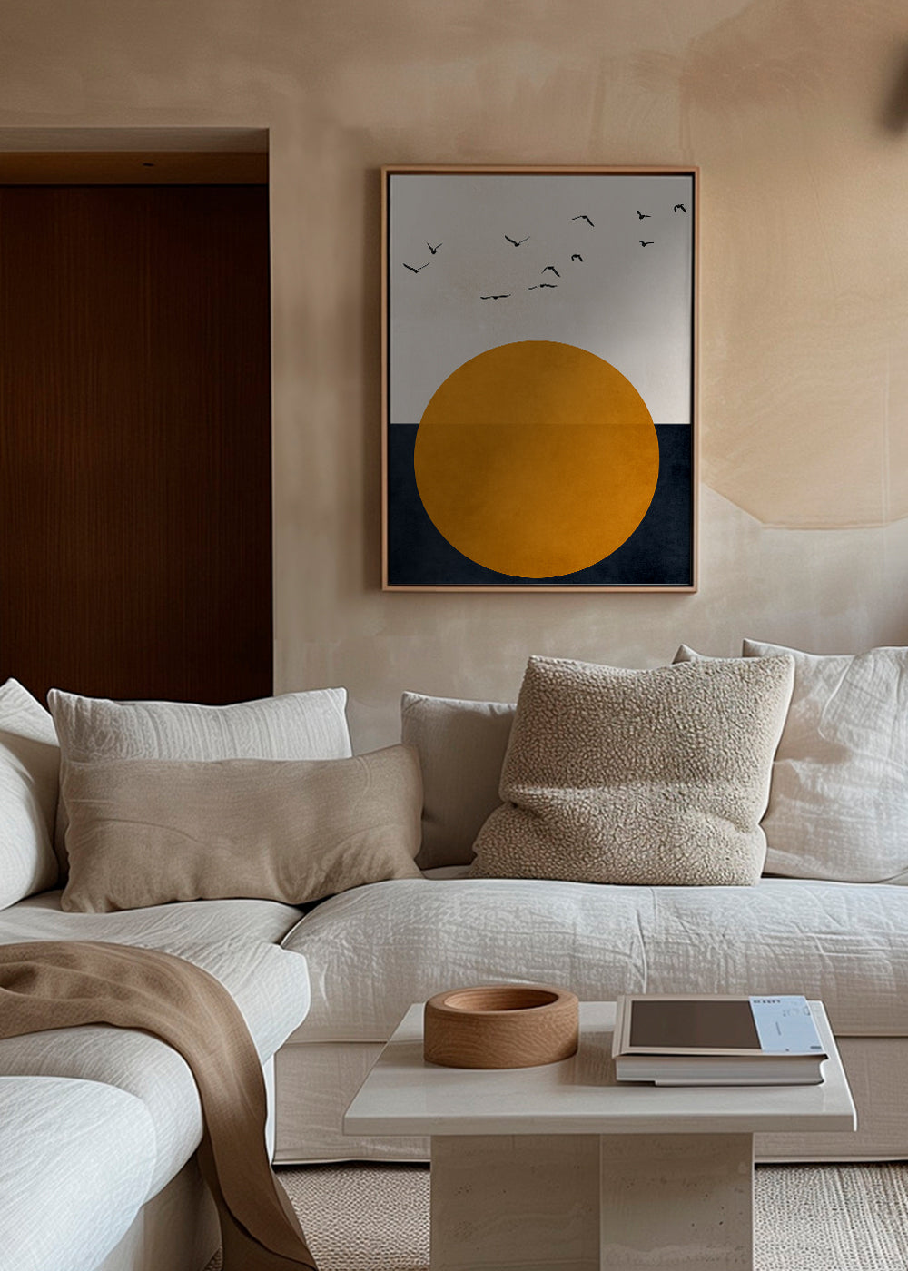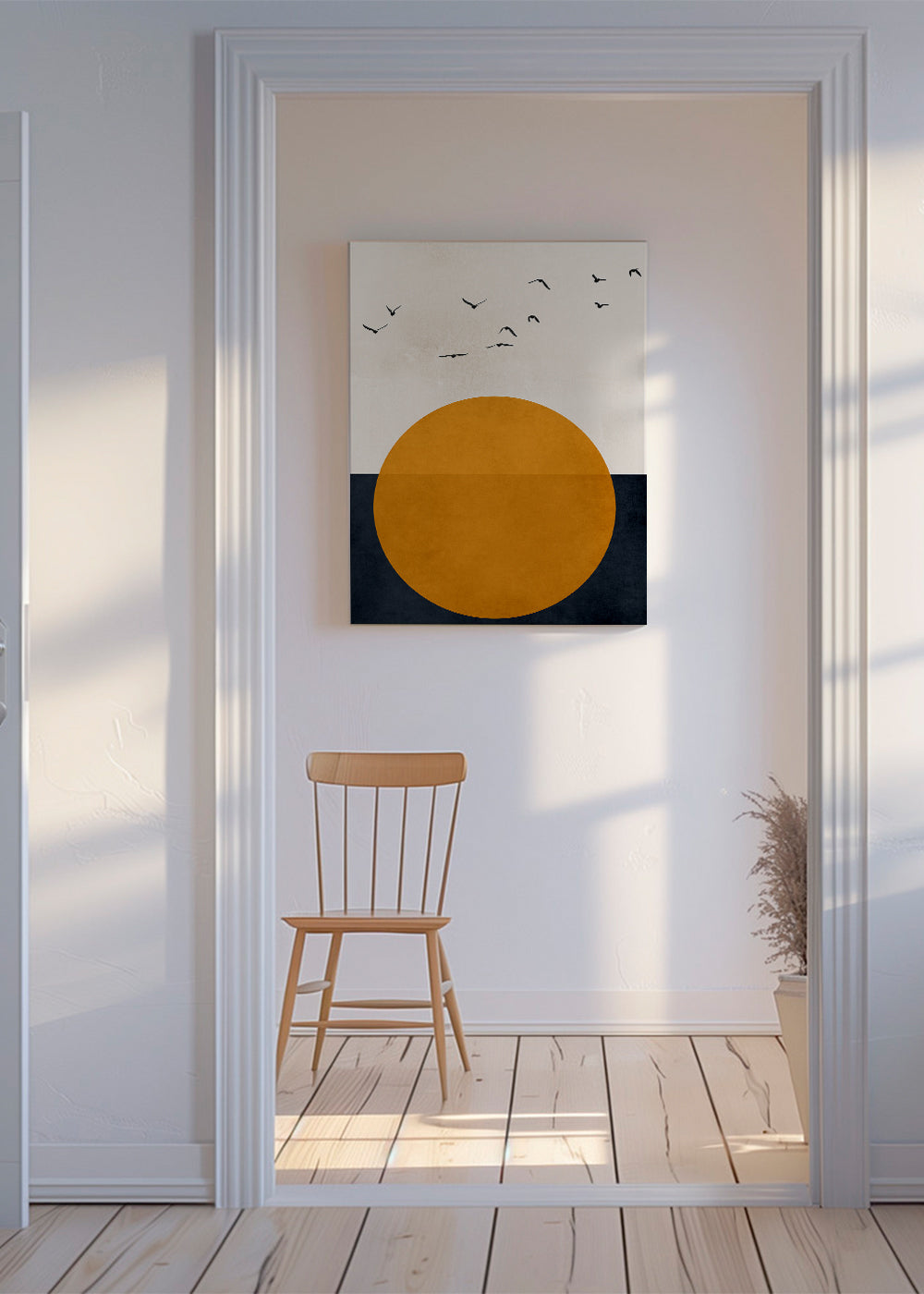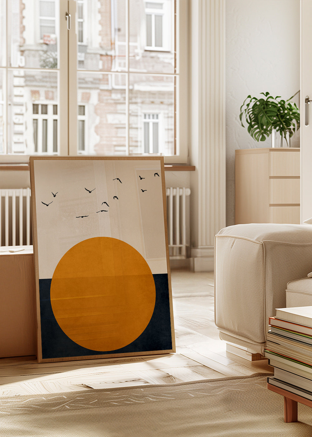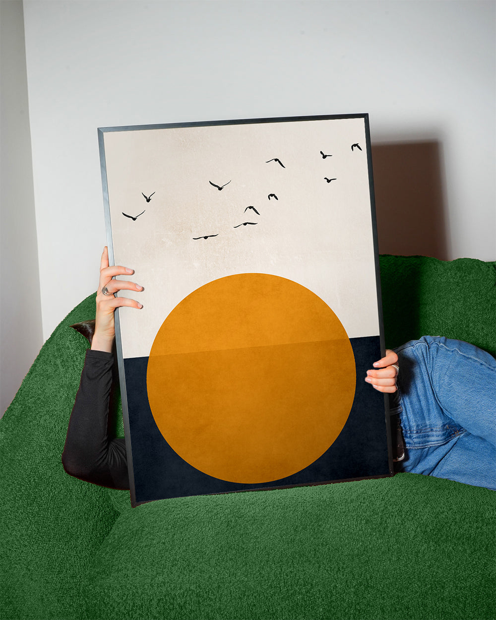 A poster from the birds wall art category, from the collection of the artist Kubistika, with yellow tones, and facing vertically. Nature in all its splendour, landscape prints convey a sense of calm. Build a home full of design and creativity.