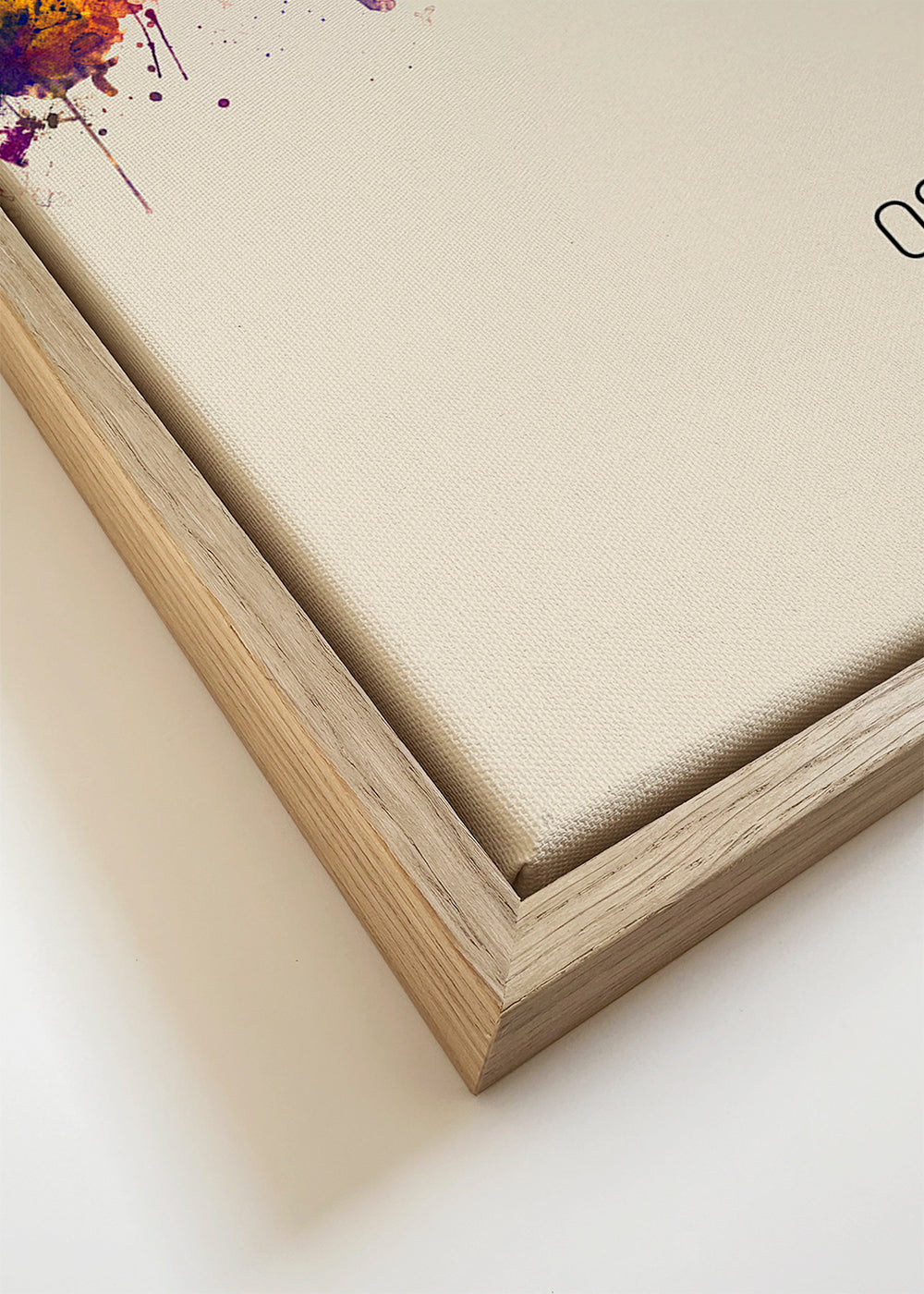 Each canvas is hand-stretched over a wooden frame. The depth is 3 cm for unframed canvases and 4 cm for framed canvases.