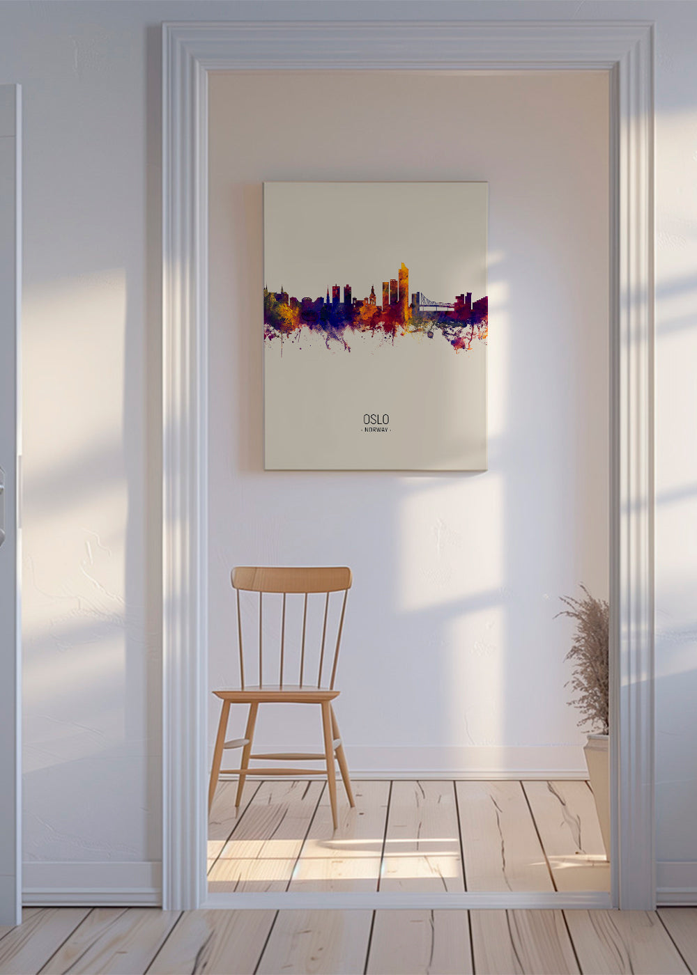 A print from our skylines canvas series, by Michael Tompsett, in tones of multicolor, and vertical layout. Travel without leaving the sofa with these and other map and city prints. Dress up your walls at home