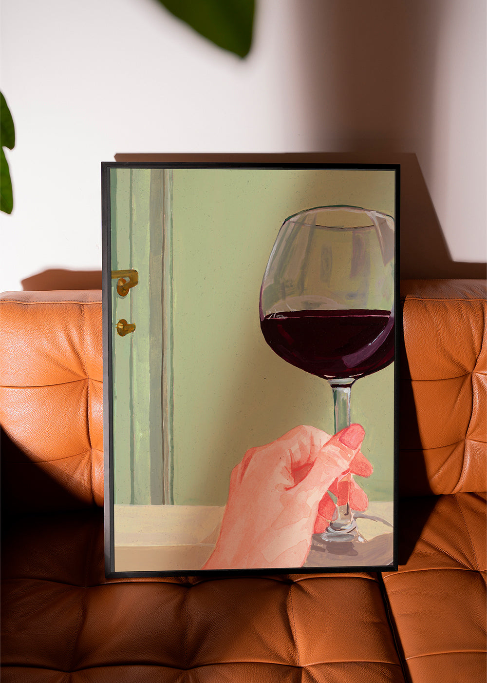 A design from our wine wall art category, made by Sophia Novosel, with red tones, and vertical layout. The kitchen can be a cosy spot, too, if you pair this design with other kitchen prints for a super chic kitchen. A new look on your walls can bring a breath of fresh air to all your decor.