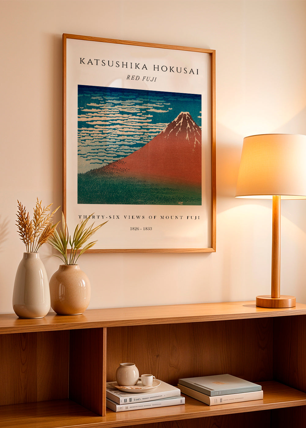 Beautiful print from the japanese wall art category, with tones of red, and to hang in vertical position. If you're looking for a retro element to add to your decor, this design is perfect for you. Pair it with other vintage posters for a highly original style. Build a home full of design and creativity.
