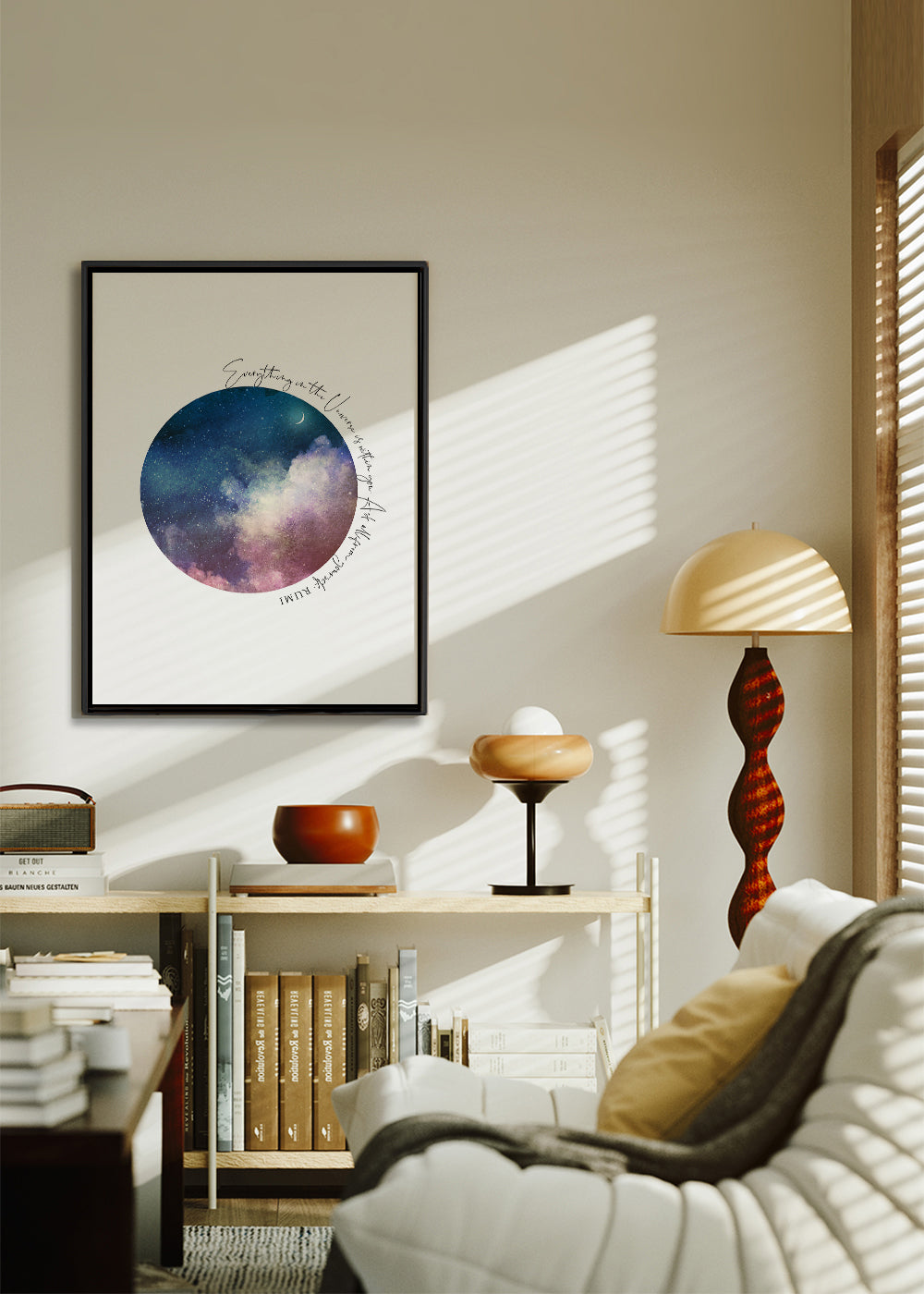 A design from our zodiac wall art category, by creative artist Ana Ospina, with tones of blue, and to hang in vertical position. It's the perfect design for those who want clean, simple minimalist decor. Fresh and original.