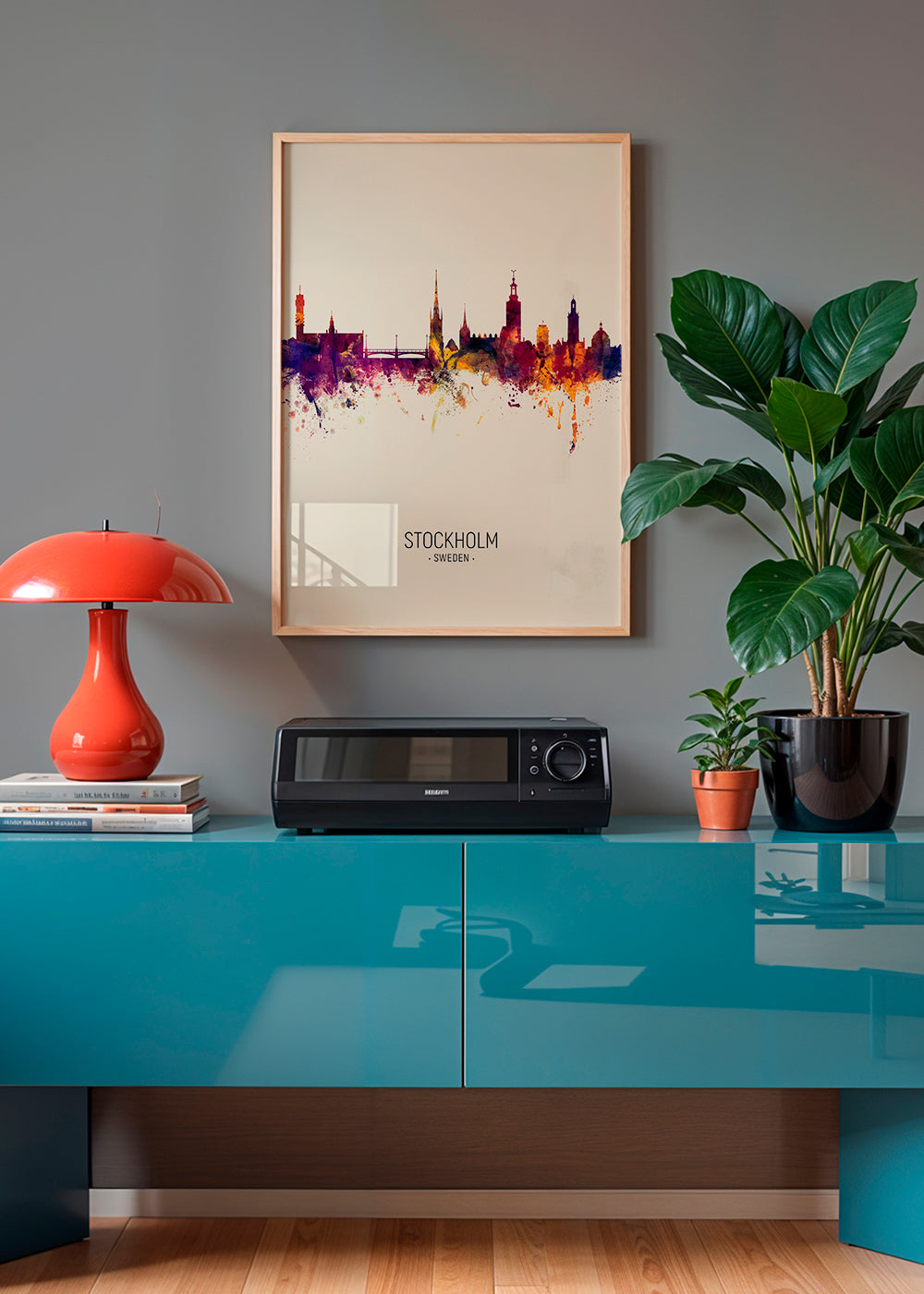Beautiful piece from the skylines canvas category, made by Michael Tompsett, in tones of multicolor, and with vertical layout. A perfect piece for the eternal traveller. Pair it with our map and city prints. Fill your decoration with art.
