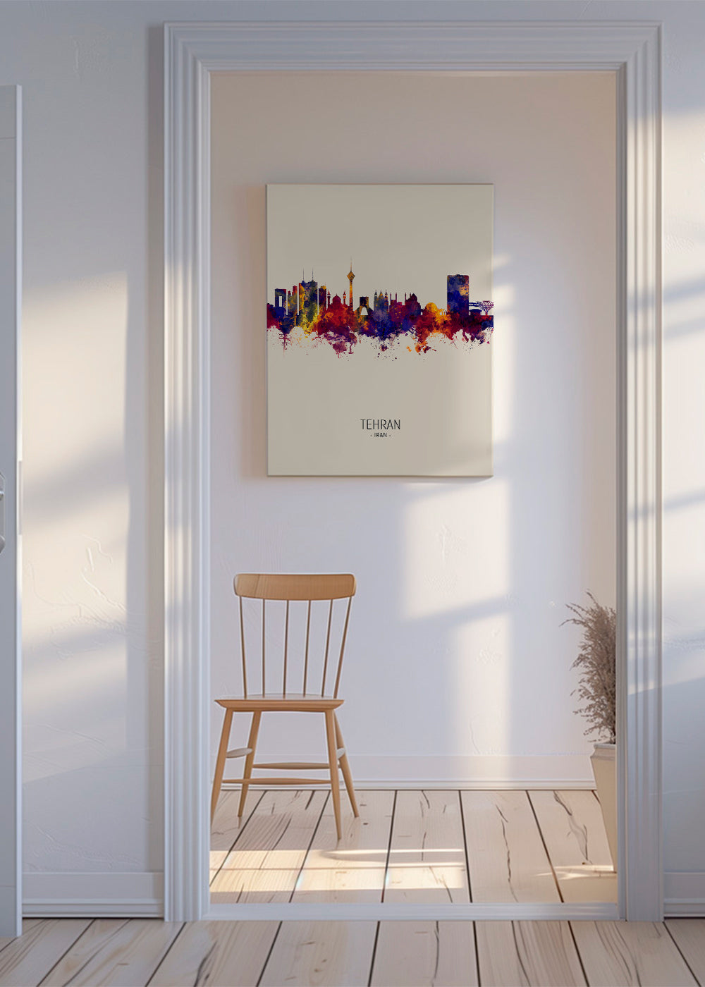 This poster from the skylines canvas collection, by Michael Tompsett, with multicolor pigments, and with vertical layout. Our map and city prints are perfect for those who love cities and architecture. Fresh and original.