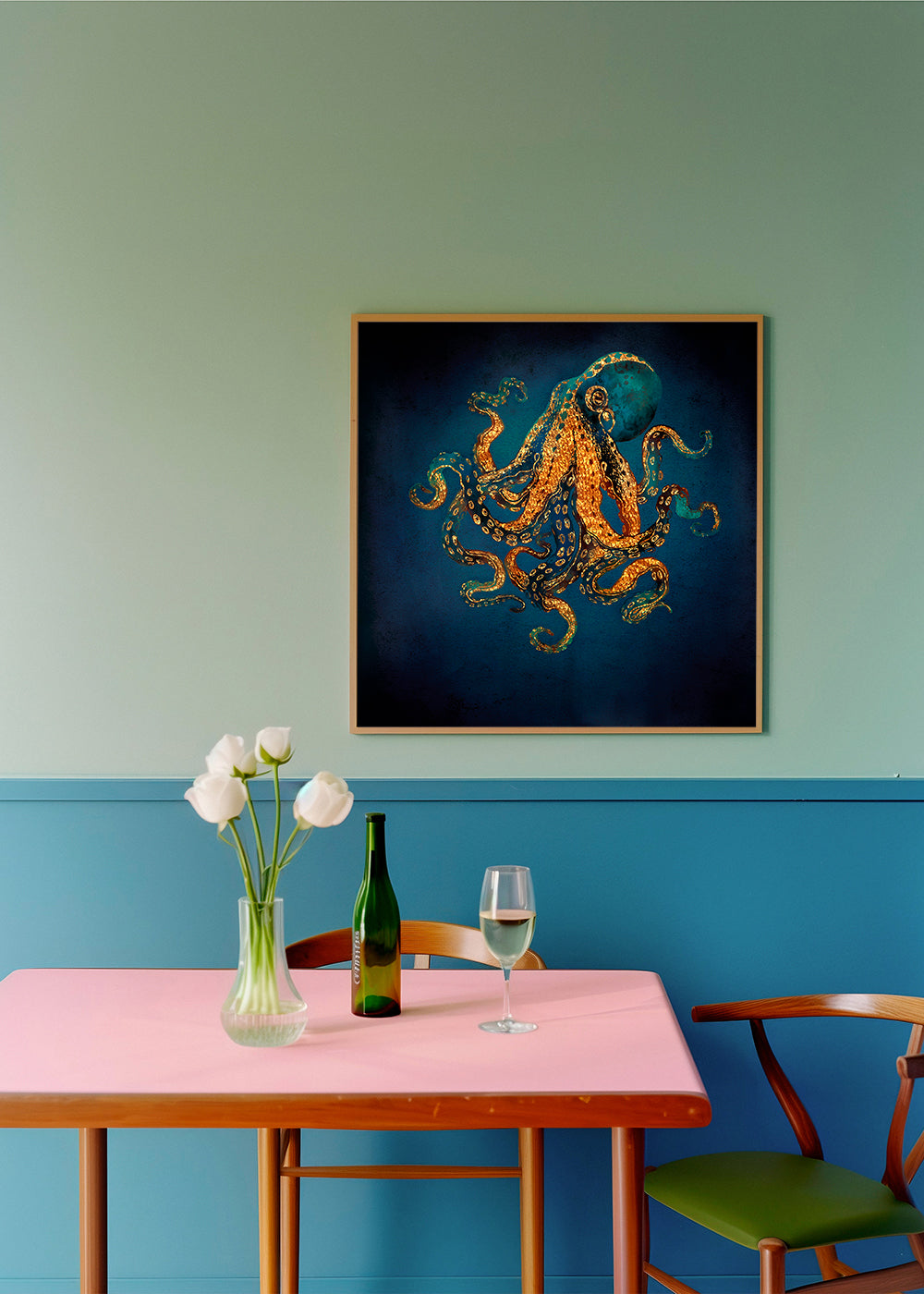 Beautiful poster inspired by the collection of animal wall art, by creative artist SpaceFrog Designs, with tones of blue. Landscape decoration brings a breath of fresh air to any room. Create your favourite spot.