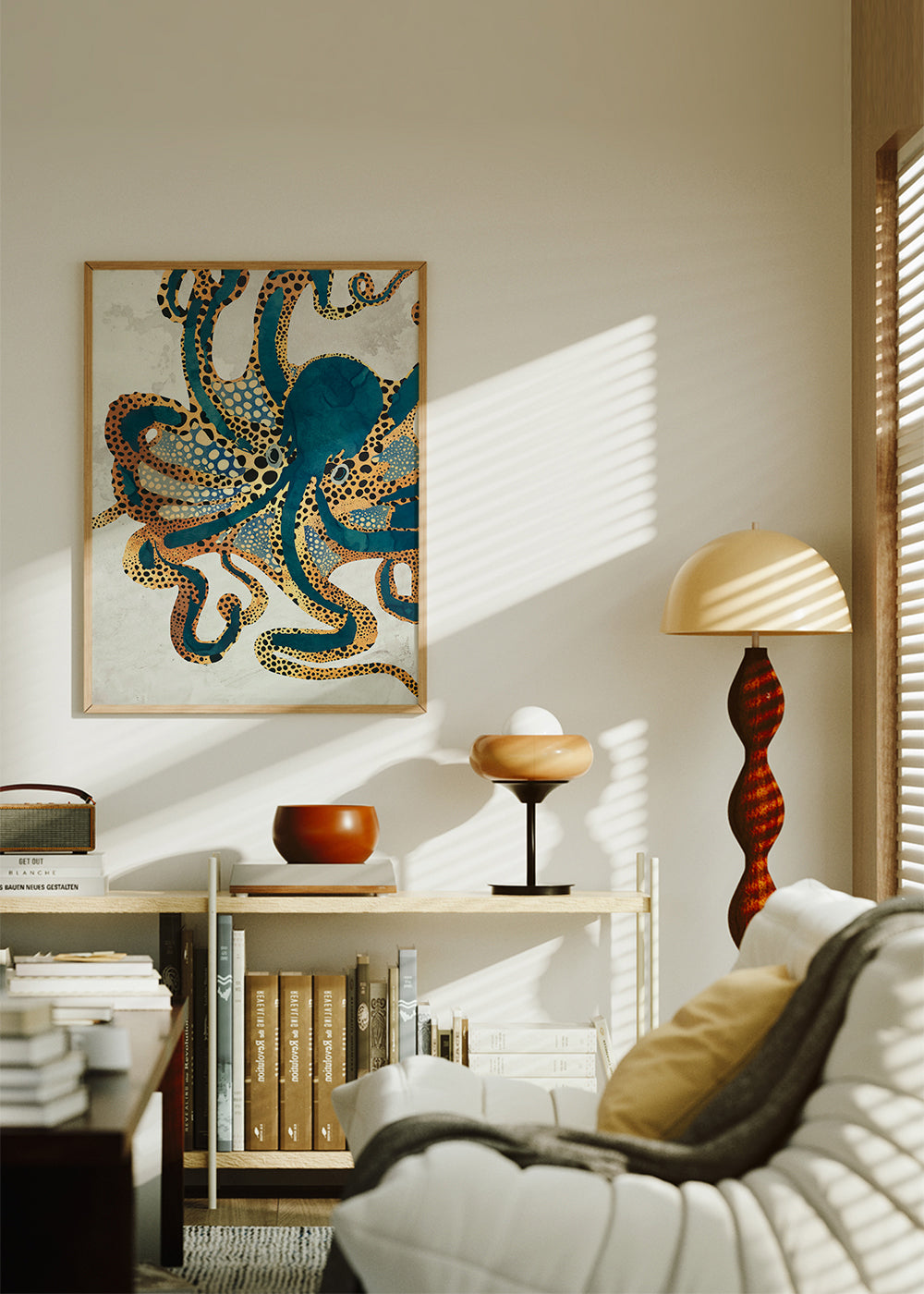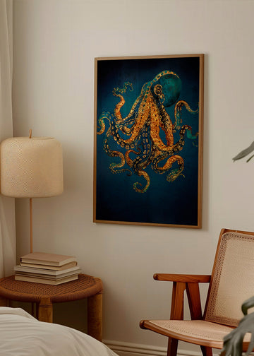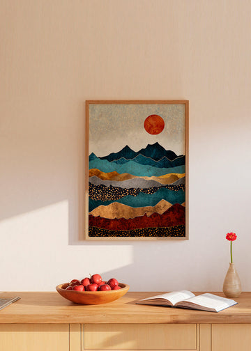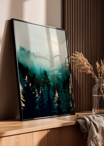 A poster from our selection of animal wall art, created by SpaceFrog Designs, in tones of blue, and facing vertically. A beautiful landscape perfect for pairing with other nature prints. The final touch for your home decor.
