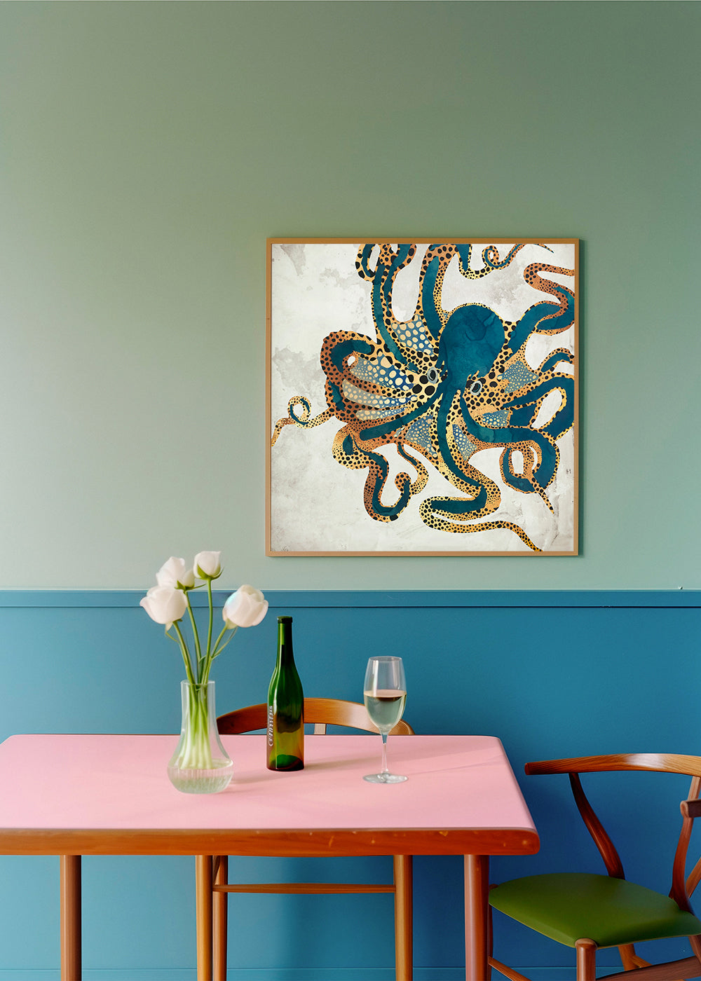A print inspired by the collection of animal wall art, made by SpaceFrog Designs, with tones of blue. The tranquillity and freedom of landscape prints is one of a kind. Walls decorated with prints are the ultimate.