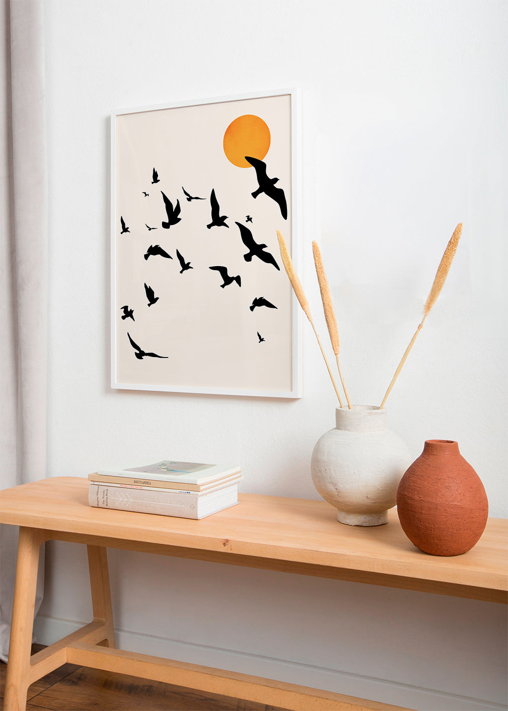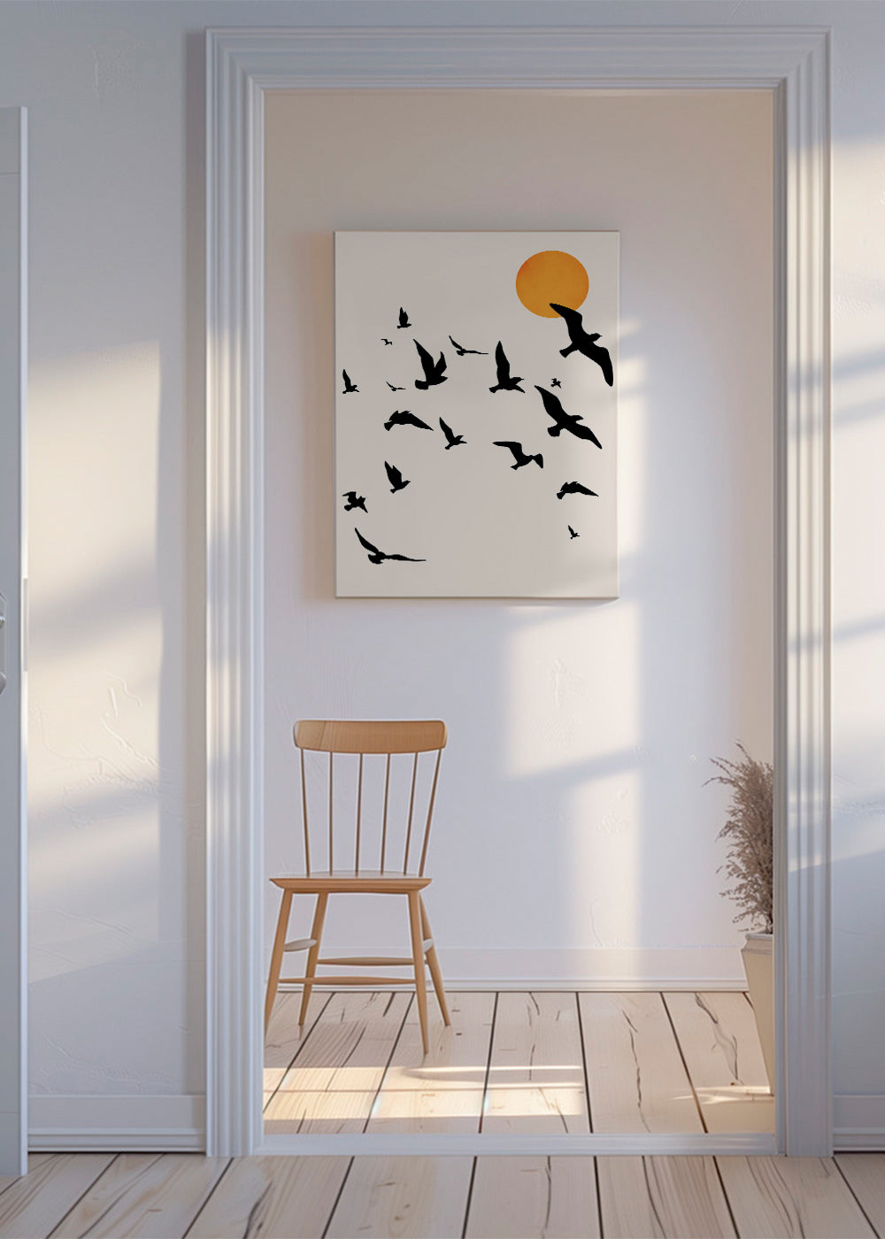 This piece from our birds wall art collection, by creative artist Kubistika, with yellow, and with vertical layout. The drawing is simple and clean, so you can pair it with other illustrations for an artistic composition. Give your home a new look.