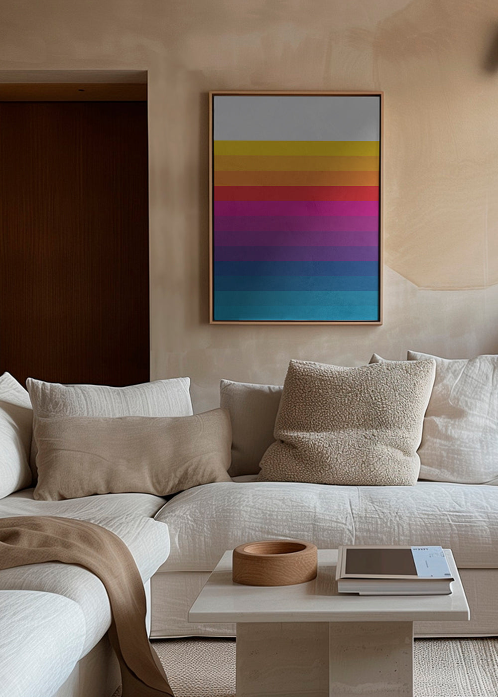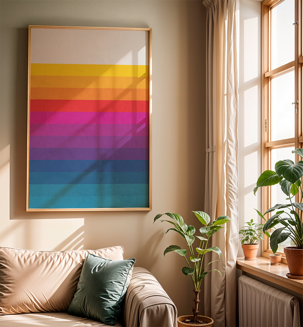 A design from our geometric wall art and prints series, made by Seven Trees Design, with multicolor, and in vertical position. The abstract, geometric shapes help create a casual, creative setting. Give your rooms a fresh look with art.