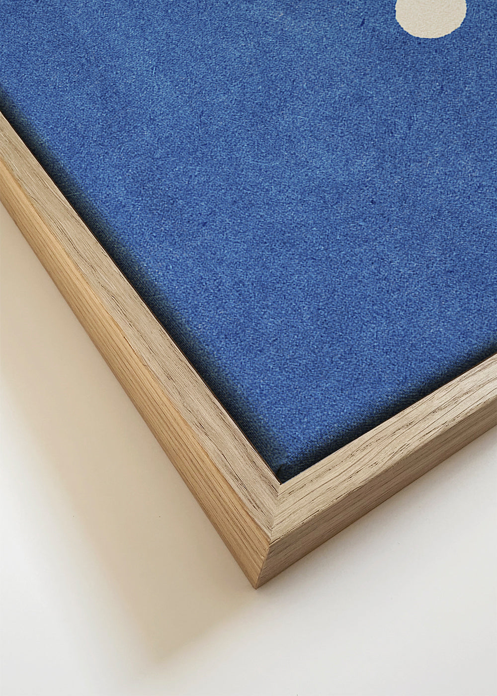We work with solid wood and aluminum frames. All framed artworks are shipped already assembled and ready to hang. The front protection is high-clarity acrylic glass.