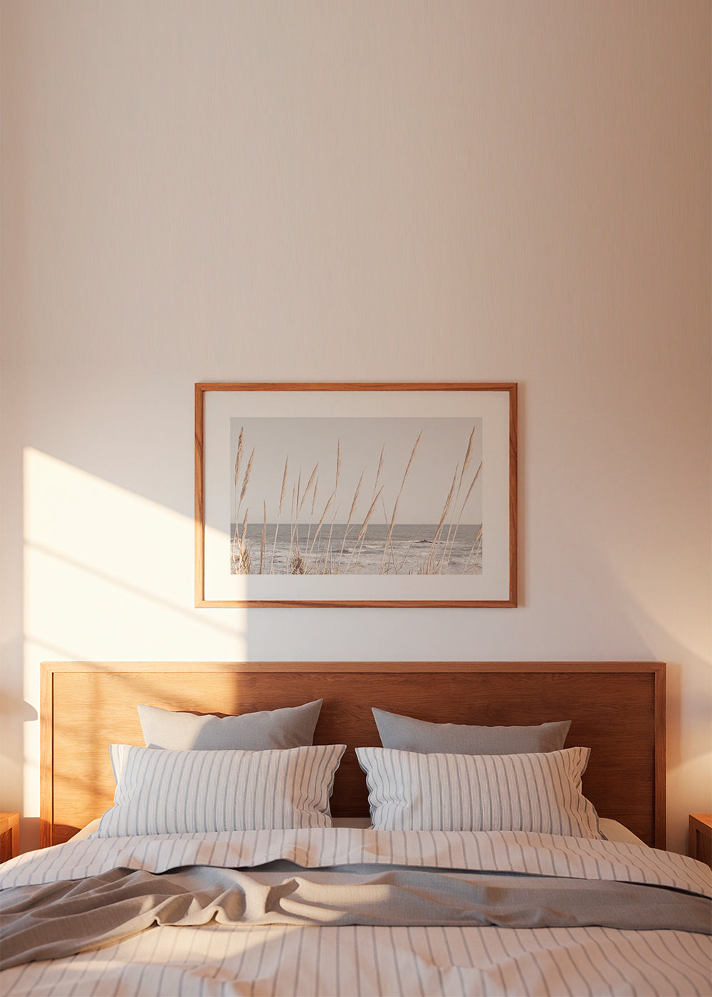 A poster inspired by the collection of beach wall art, with brown tones, and in horizontal position. If you're looking for a mindfulness print for your home, this piece is a sure bet. Take a break and enjoy some mindfulness decoration. Choose the size that best fits your decor. This piece includes a white strip framing the design to boost its style.