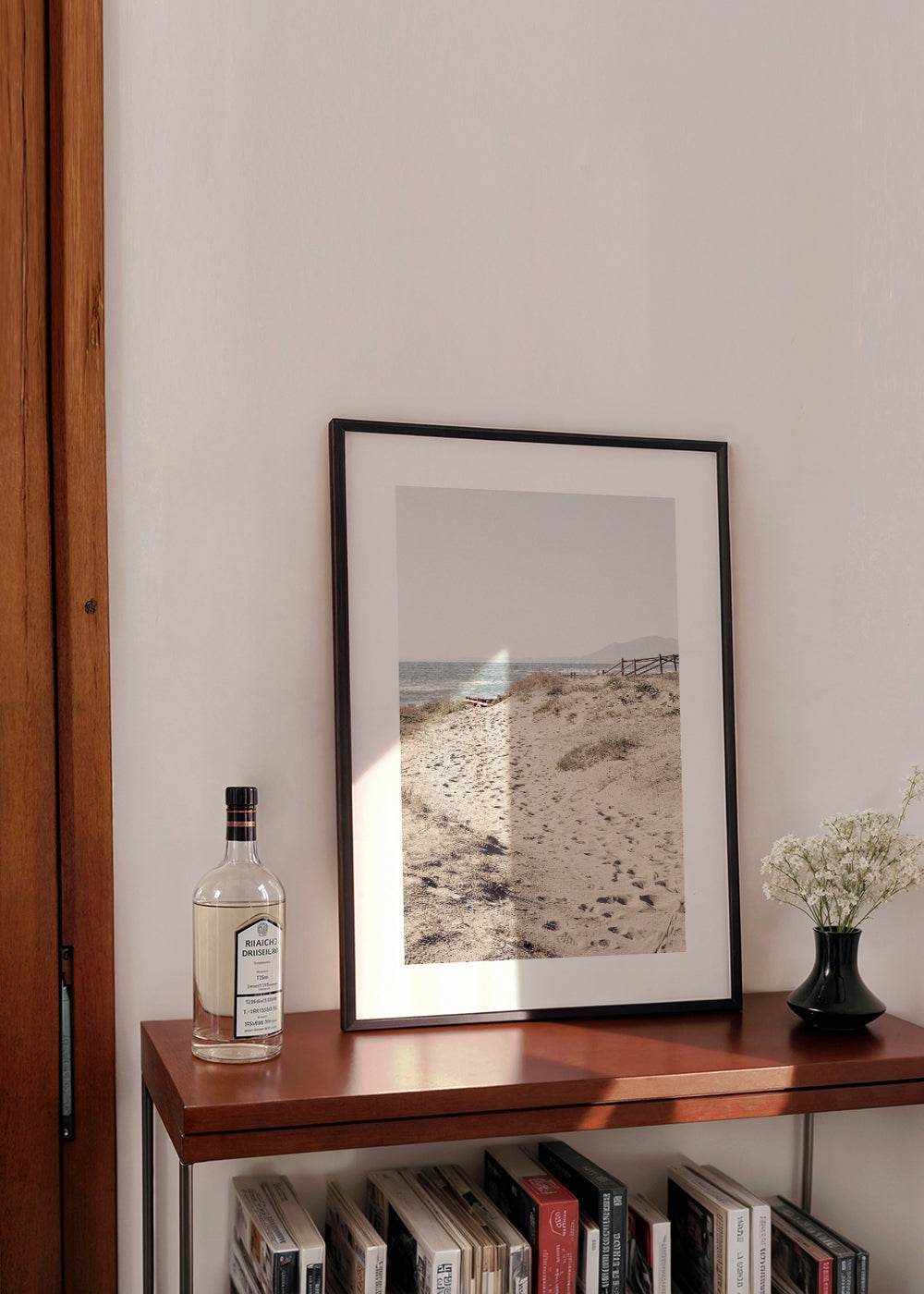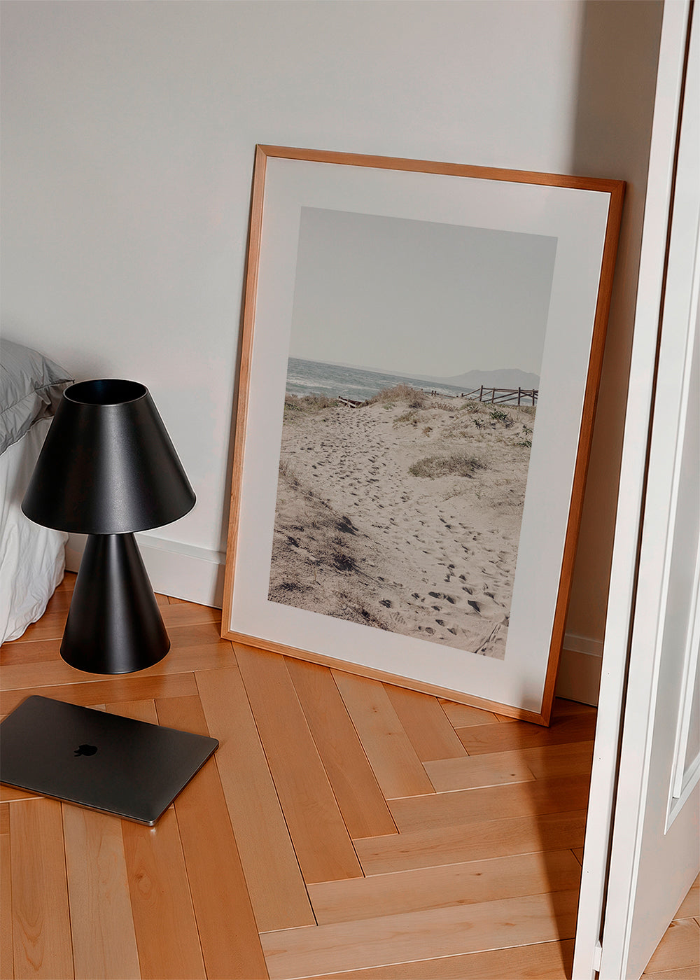 A design from the beach wall art series, with brown pigments, and perfect to hang vertically. This piece will relax you straight away. Relaxing posters are perfect for anywhere in the home. Fill your walls with art. The white strip around the piece enhances its expressiveness.