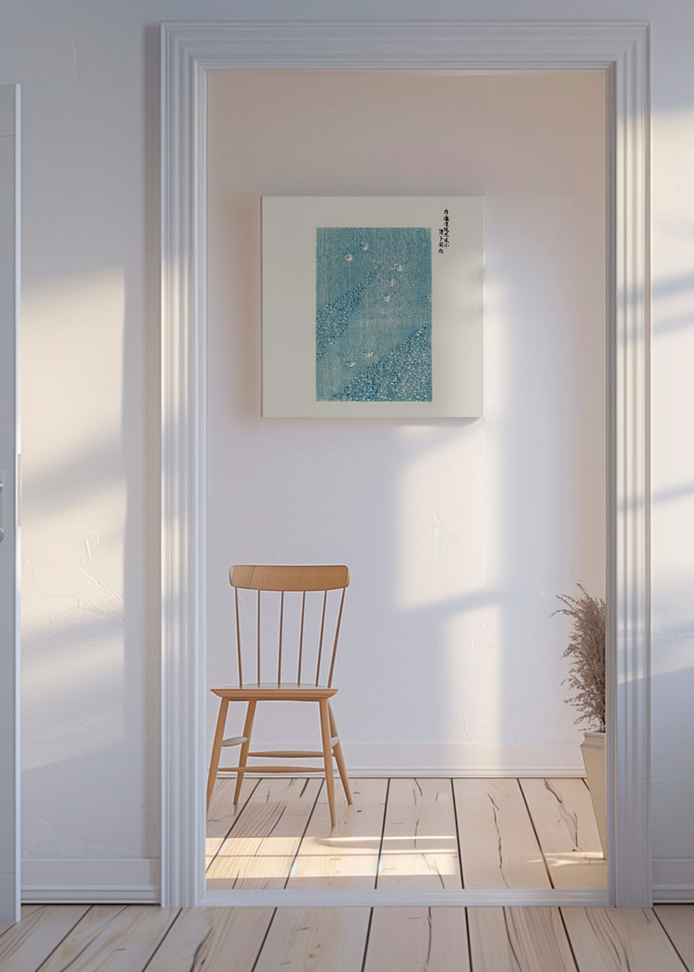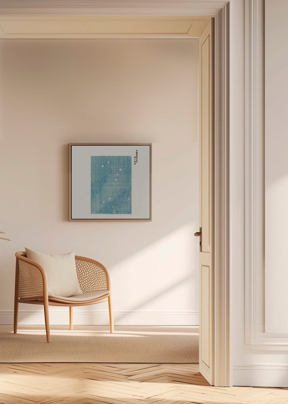 Scandinavian wall art Blue Birds Woodblock print from Yatsuo no tsubaki by Taguchi Tomoki - Square