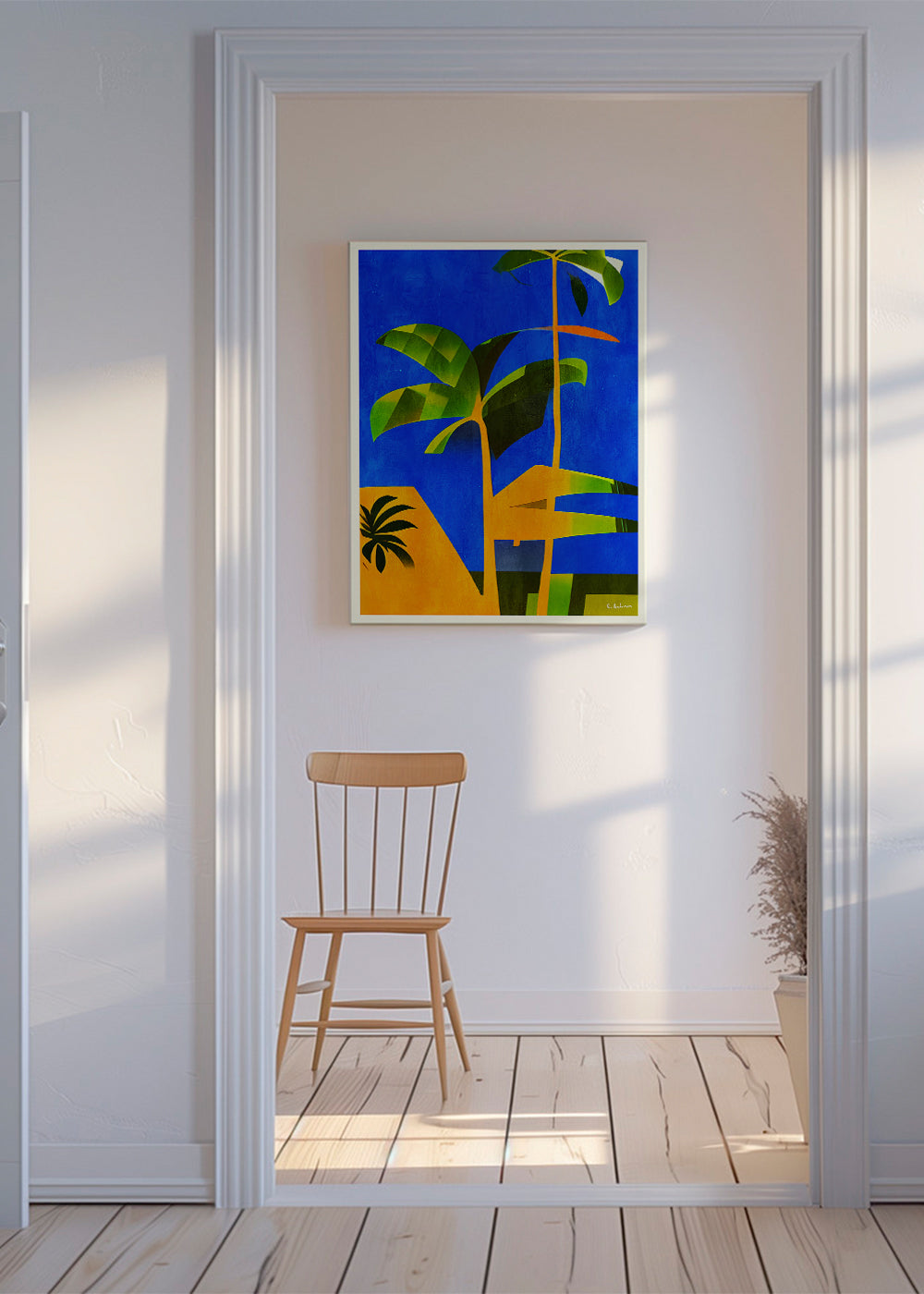 A design from the vintage wall art collection, by Bo Anderson, with tones of blue, and to hang in vertical position. A retro style that is perfect for a vintage look. There are no ugly or beautiful walls, just empty or full ones.