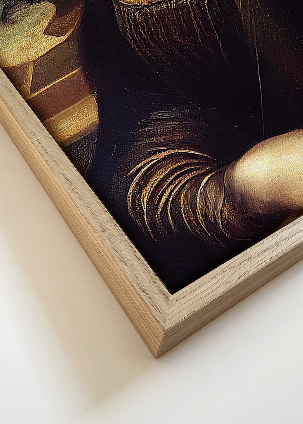 If you select the passepartout option, we will add the white matt board to the frame, and we will reduce the design of the work. For example, if you select a print size 20x28 in, with an oak colored frame and passepartout, we will reduce the design of the print to the previous size (16x20 in). In this way, it will adapt perfectly to the inside window of the passepartout.