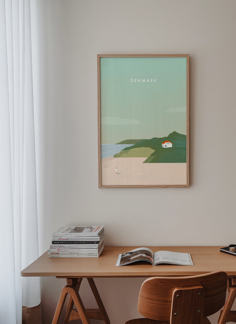 A print in the style of our travel posters, created by Katinka Reinke, in green shades, and in vertical position. A perfect piece for the eternal traveller. Pair it with our map and city prints. Create spots full of art.