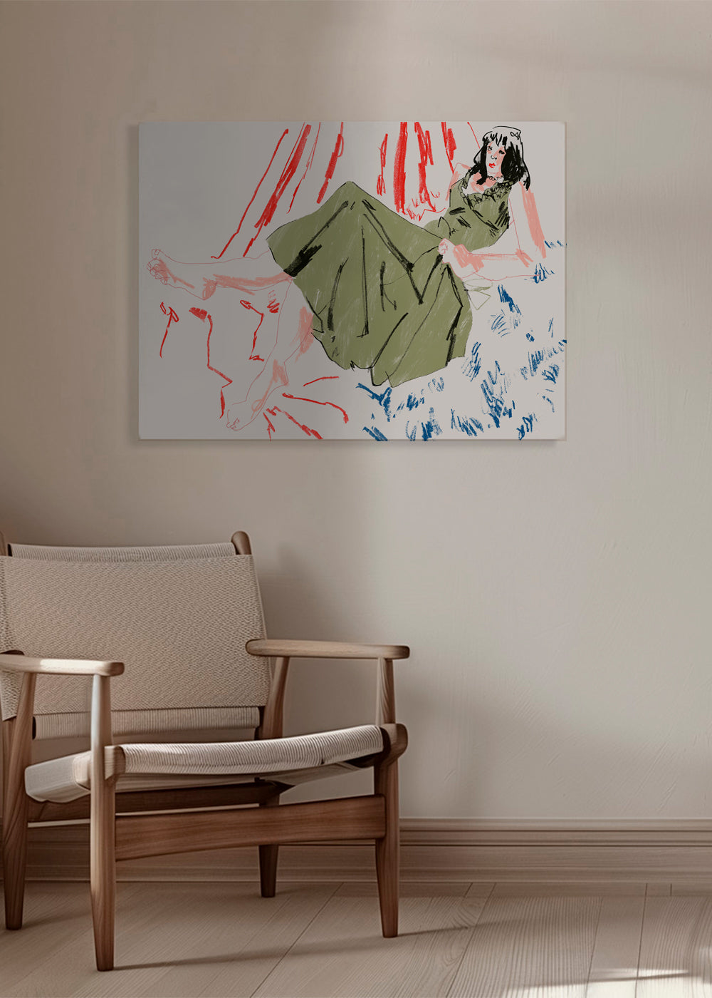 A print from the girls wall art category, by the artist 1x, with green, and perfect to hang horizontally. A perfect piece for spaces bursting with art and creativity. Our drawings are perfect for decorating empty or boring spaces. Let art flood your home.
