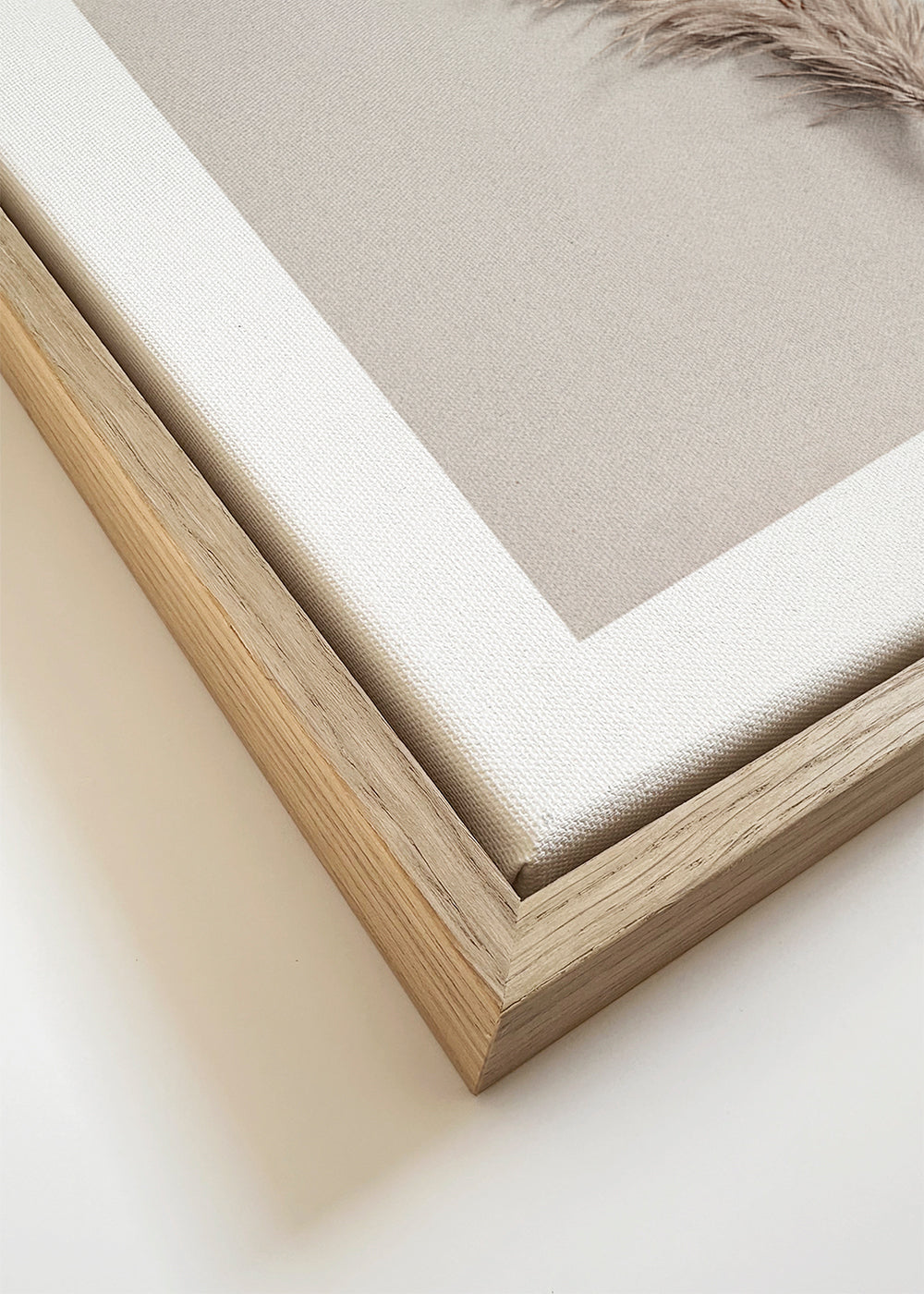 The wooden frames up to 20x28 in (included) have a width of 0.6 in and a depth of 1.2 in, while in the larger ones the width is 0.8 in and a depth of 1.2 in.
